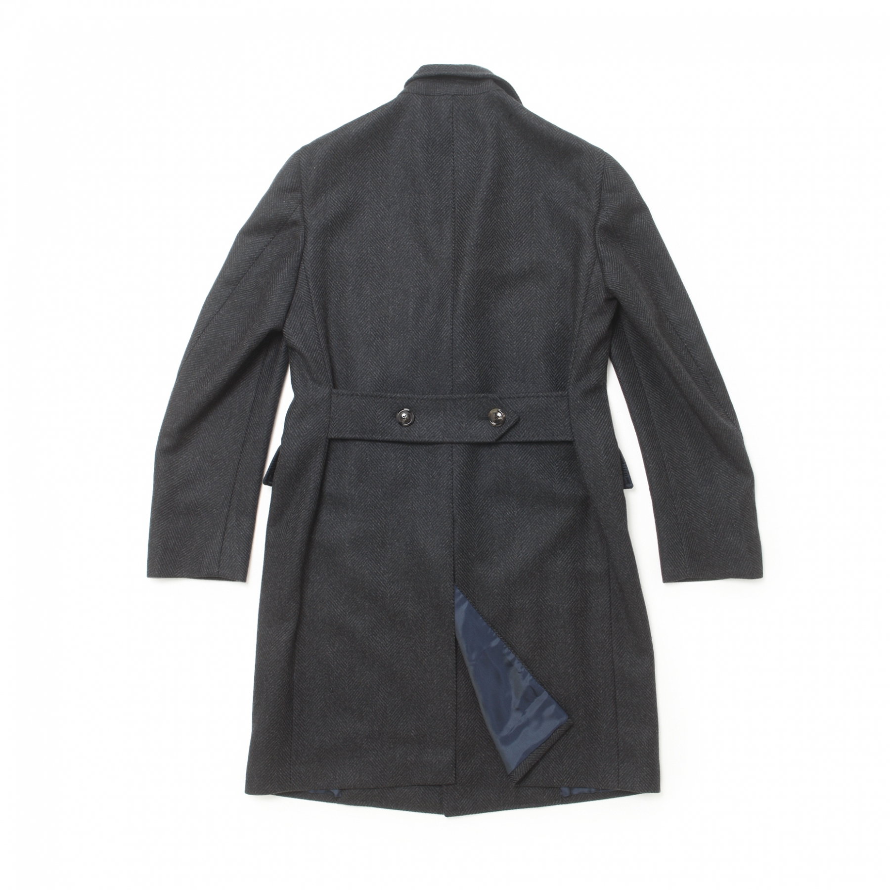 • 総裏仕立て、センターベント、胸バルカポケット、フラップ付きポケット、バックベルト、袖口アンフィニッシュ(4つボタン)