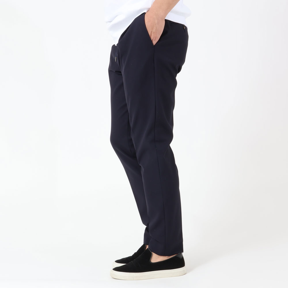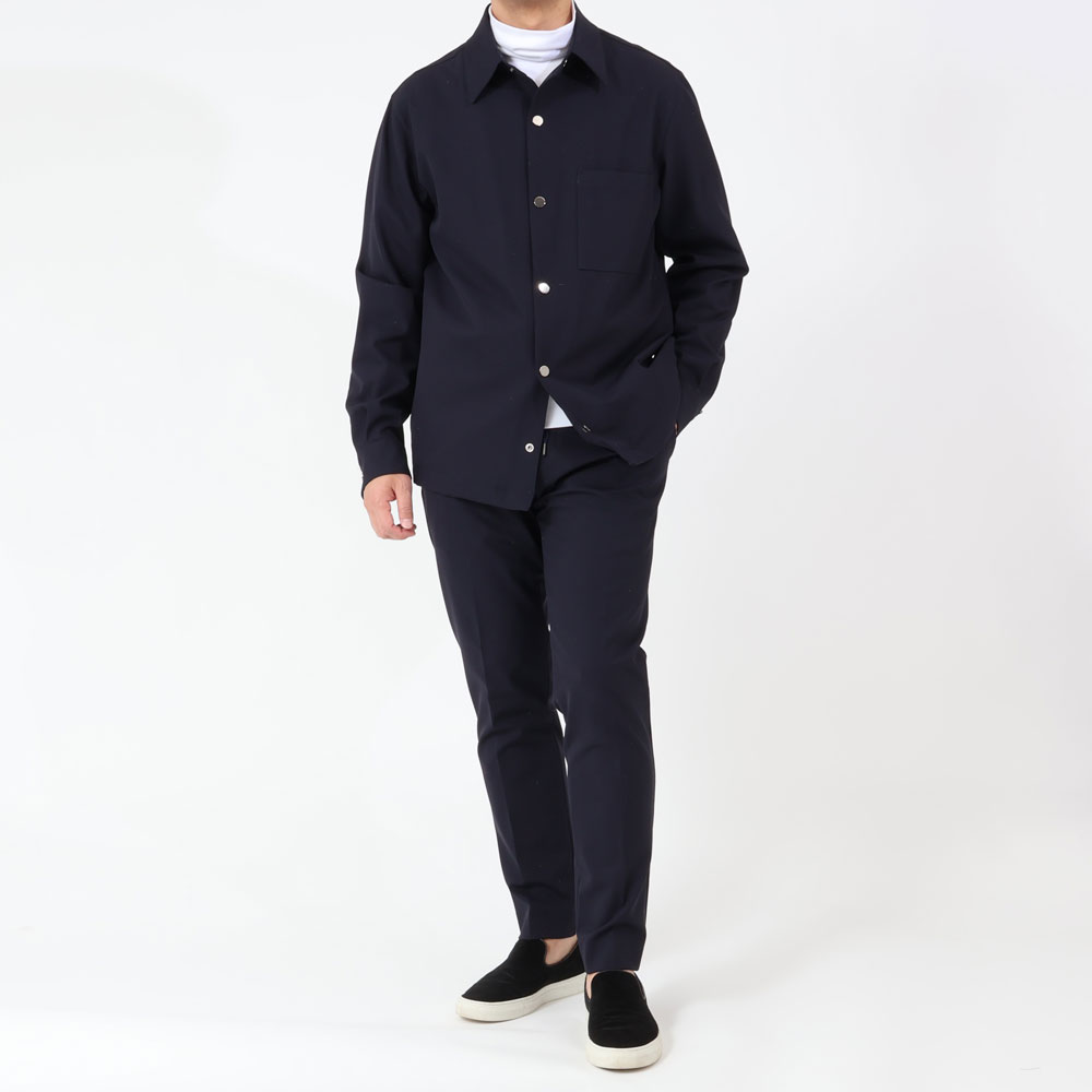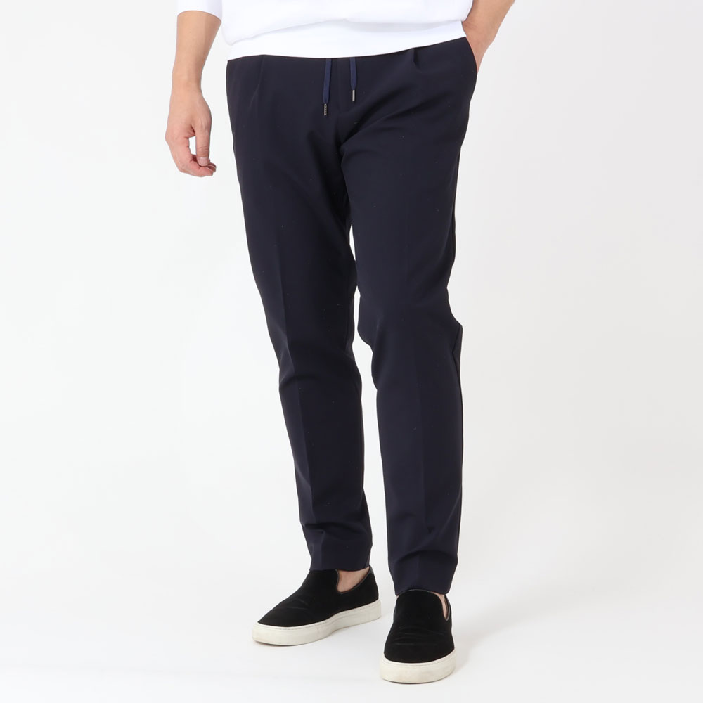 ・ウエスト廻りが楽な着感のため、クルマの運転時や長距離移動の時にもピッタリな一本です。全2色のラインナップ。セットアップとなるシャツ型ブルゾン(ブラック/ネイビー)はこちらから。