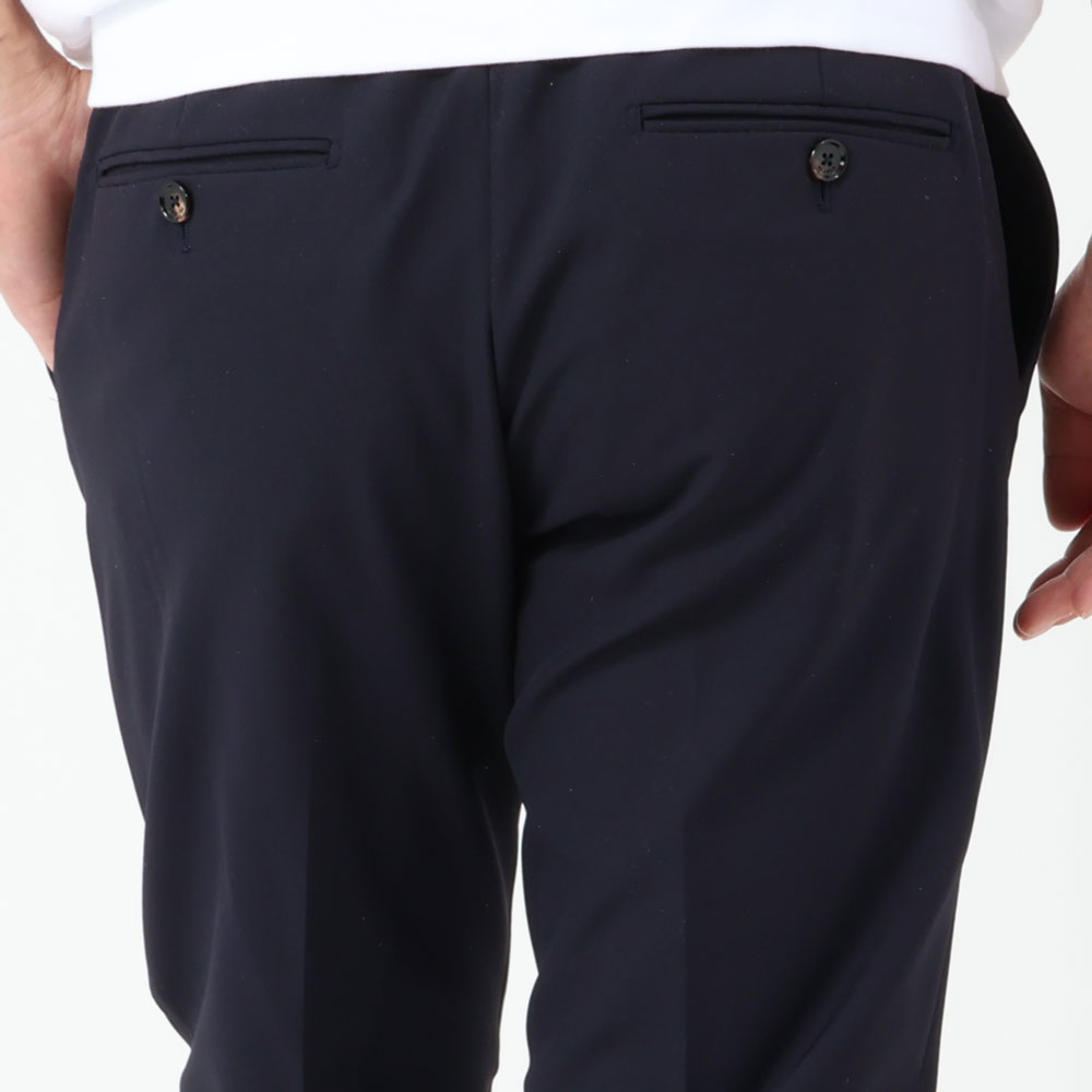 高いストレッチ性により動きが快適、シワになりにくいので長時間移動の時でも綺麗なままで安心して穿けます。膝から裾にかけてテーパードが効いているのでスッキリとしたシルエットが特徴です。サイズ31を着用し、丁度良いサイズ感でした。