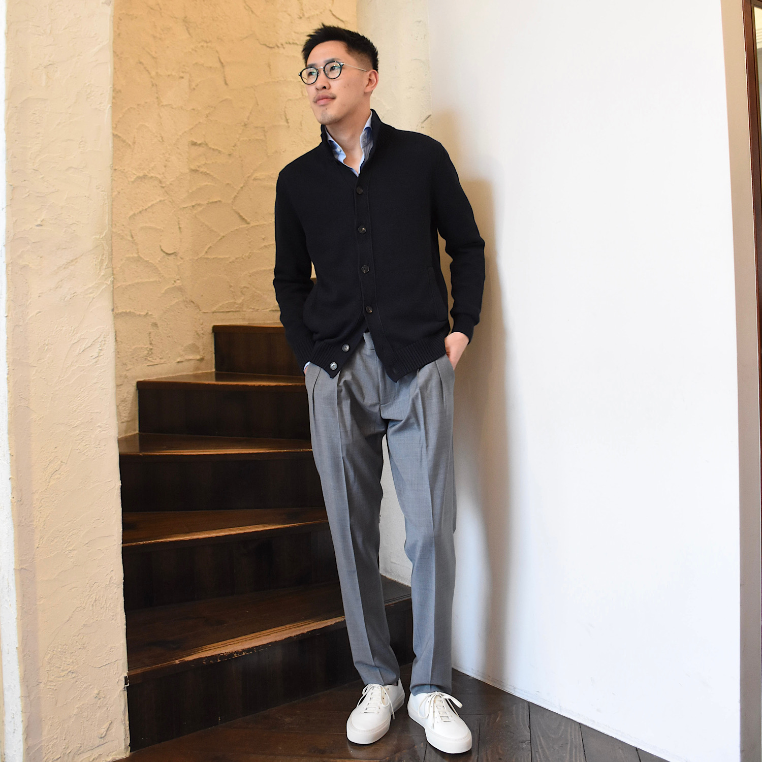 ニットでありながら、きちんと感のある名作「キョート」。サラッとしたタッチと高い通気性を備え、高温多湿の時期の羽織りとして最適です。シャツやカットソーの上からサイズ44を着用し、ちょうど良いサイズ感でした。