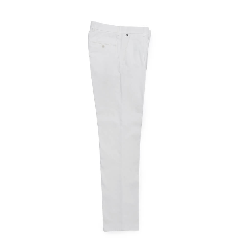 ・食事後や着席時、または動作をした際に”Waist Comfort Band”が取り付けられているウエスマンに負荷が掛かるとハーフサイズ(2センチ)程度は優に伸びるため、ウエスト廻りのストレスがかなり軽減。例えるならばウエストゴムシャーリングパンツの着用感に近いものの、普通のスラックス仕立てに外見上は見える、という画期的な仕様です。