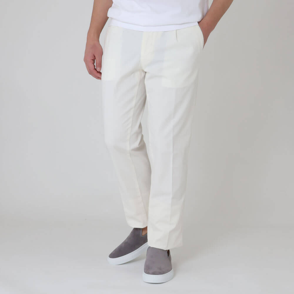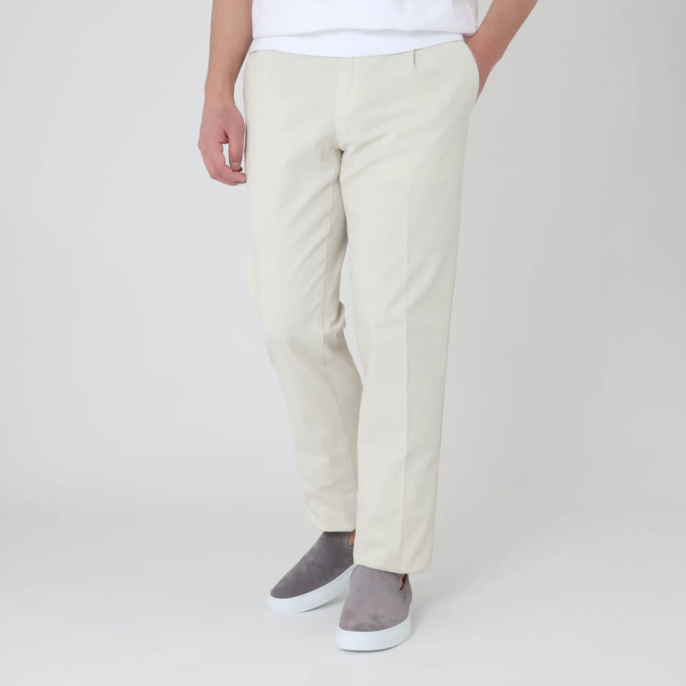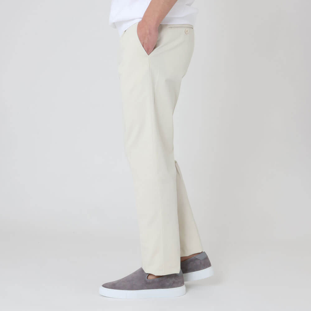 ・コットンをベースにリネンをブレンドしストレッチを効かせた生地は、後染めならではのこなれ感と春夏シーズンにピッタリな涼しげな風合いが特徴。ご自宅でケア(手洗い)できるお品物です。全3色(ライトグレーが今後入荷)のラインナップ。