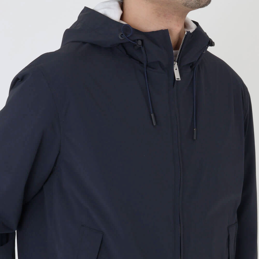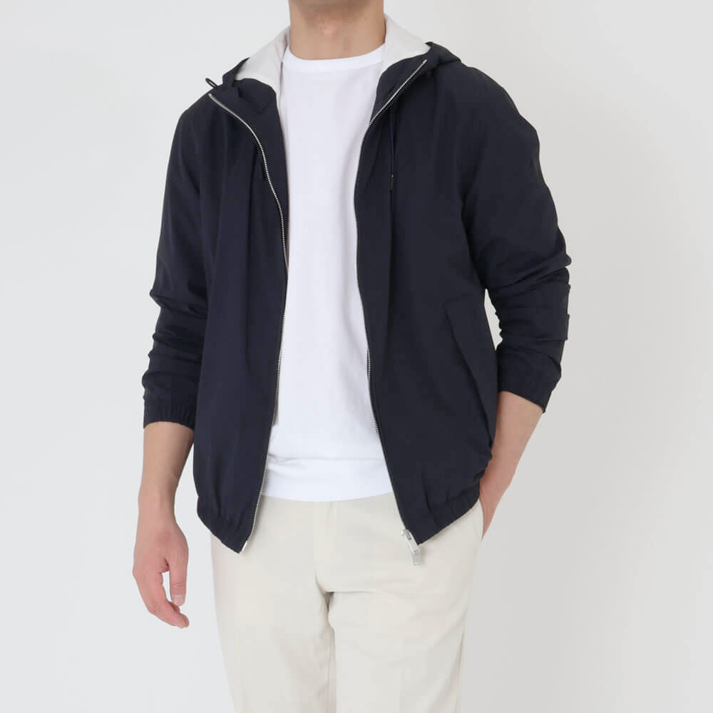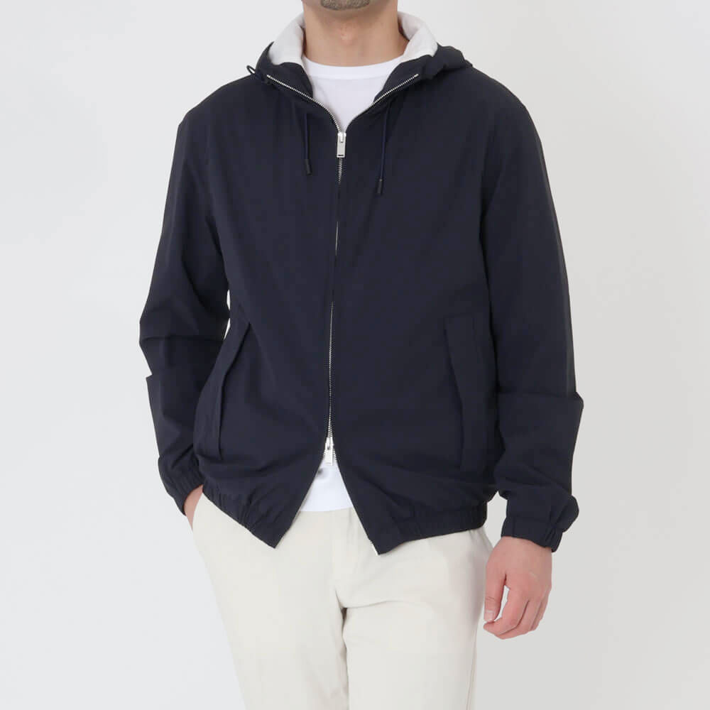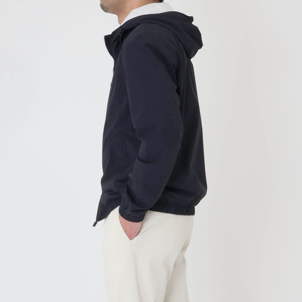 ・サステナブルなストレッチナイロン(撥水性、リサイクル素材、PFC FREE)を使用した「LARDINI(ラルディーニ)」のパーカーです。