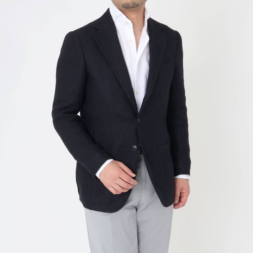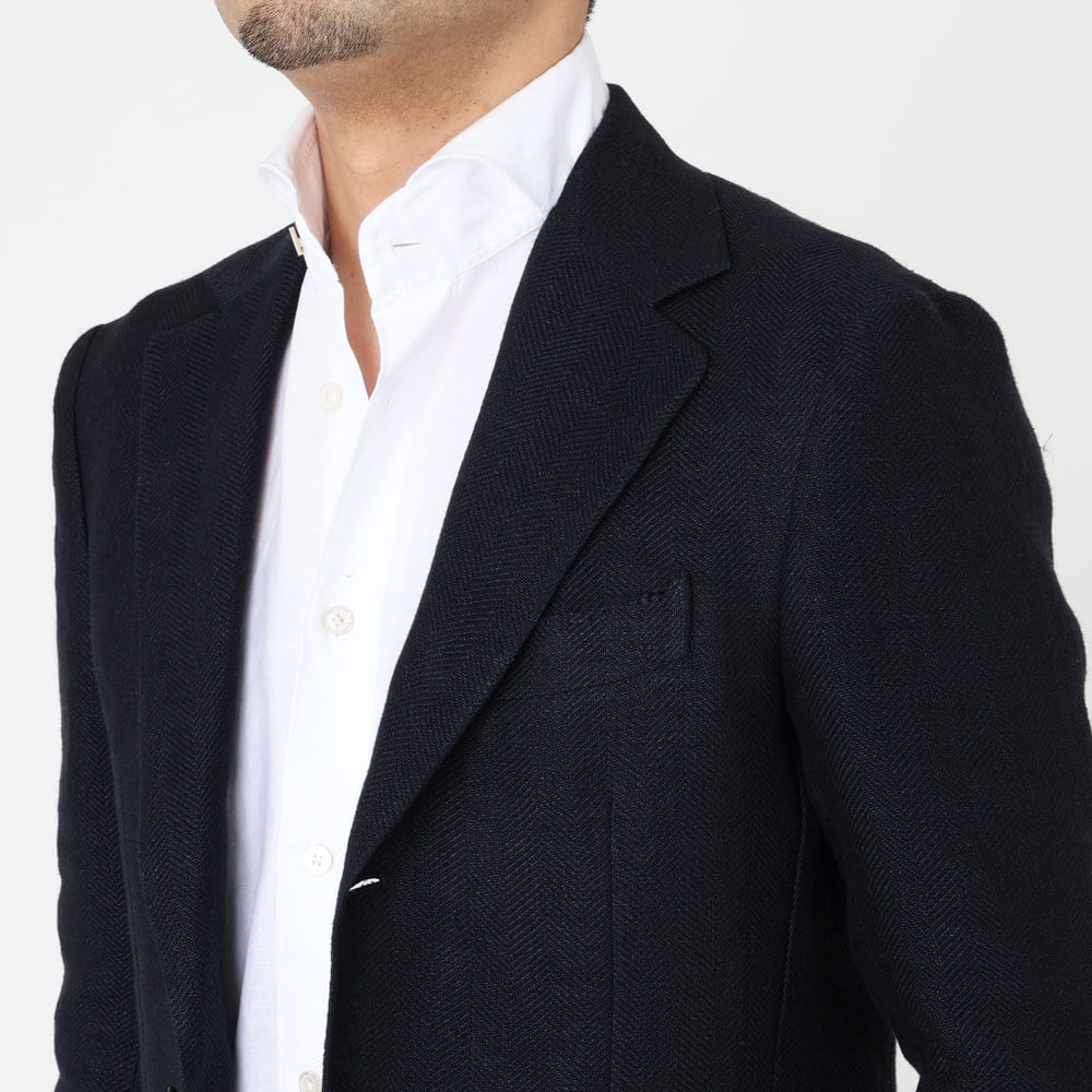 デ・ペトリロ / リネン ヘリンボーン 3つボタン ジャケット(芯無し)/GIACCA ANACAPLI TS27071