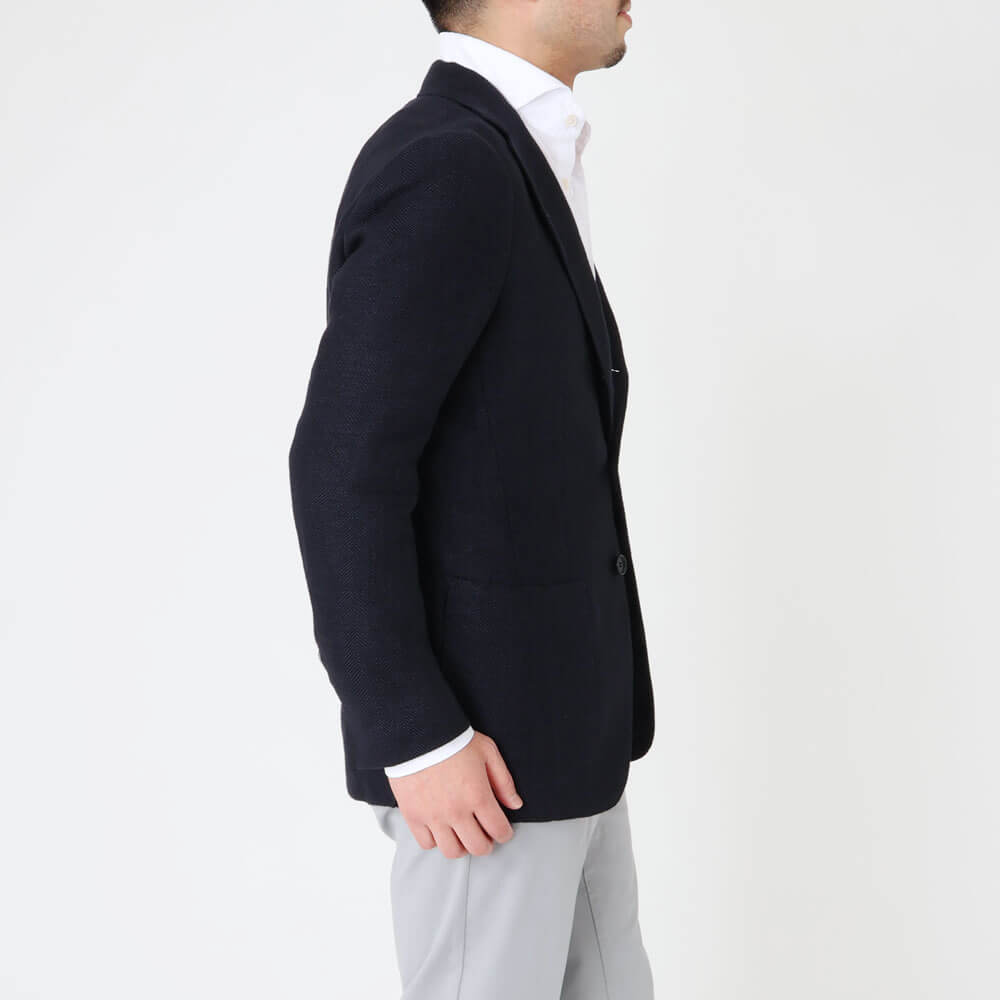 ・ほぼ芯地を使っておらず、軽く柔らかな着心地が楽しめます。見た目にも軽やかでリラックスしたムードが漂います。