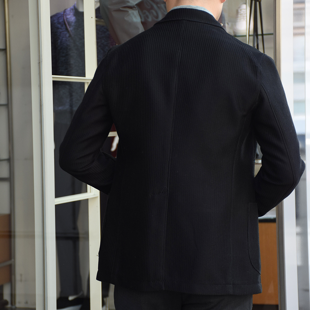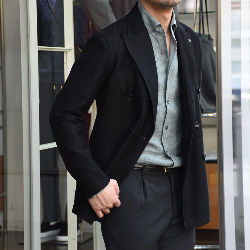 ・モデルは「TAGLIATORE(タリアトーレ)」の中で最も軽い仕立ての"LIGHT"。柔らかな仕上がりのため、ジャージーなどのカジュアルな生地にピッタリです。