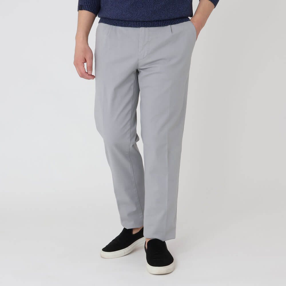 ・”FEDERICO 01 REGULAR”は、1アウトプリーツで緩やかなテーパードシルエットを描く「GTA(ジーティーアー)」のレギュラーフィットモデル。サイドポケットはスラッシュ(斜め)になっており、プリーツやフロント持ち出しと相まってシャツなどをタックインすれば腰廻りにポイントが生まれ、ベルトレスでも違和感がありません。