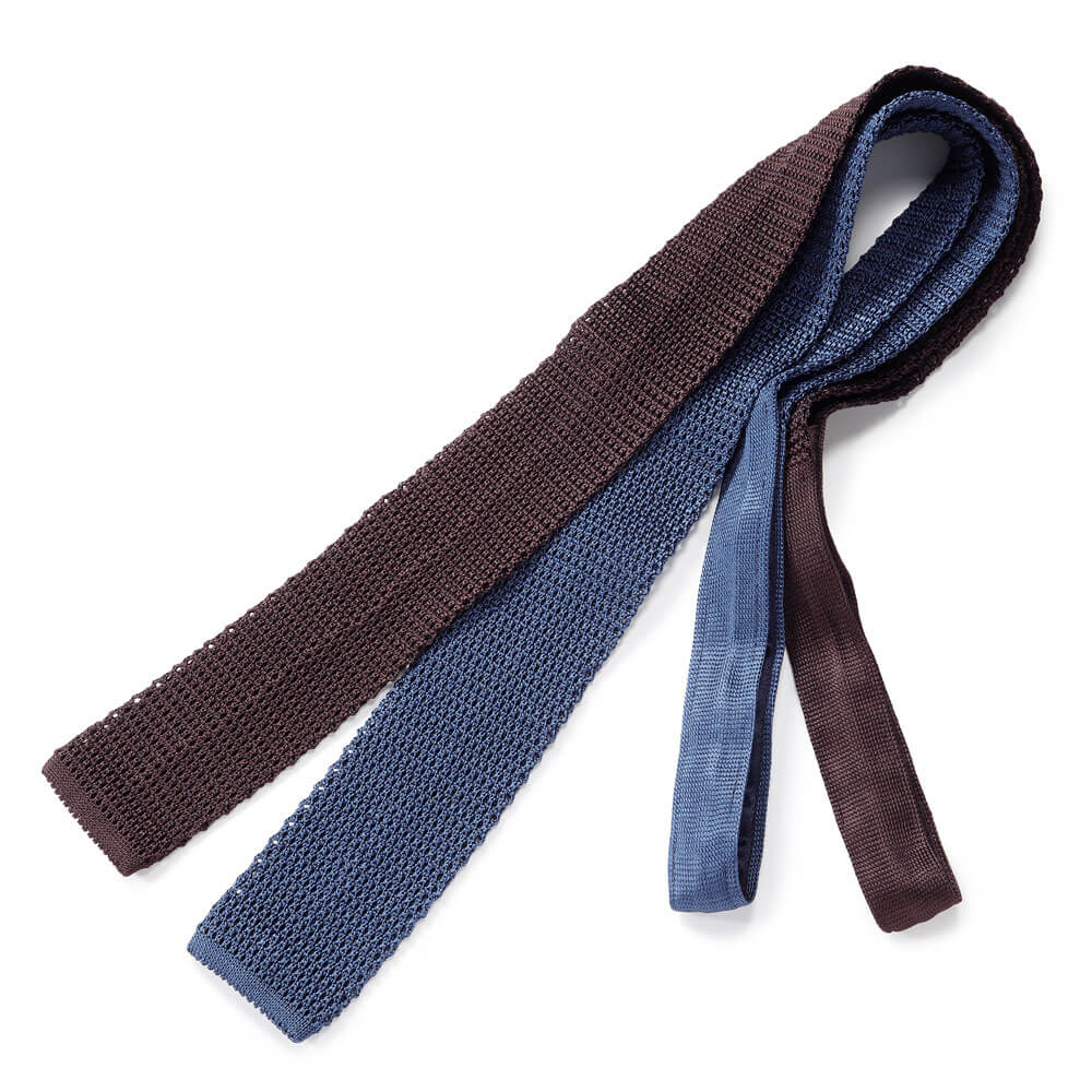 ・こちらは、セルロースとコットンにナイロンをブレンドした糸を使い、繊細で美しい編み柄を表現。同じブルートーンの糸を3色程度組み合わせ、奥行きのある色合いと立体的な表面感が特徴です。