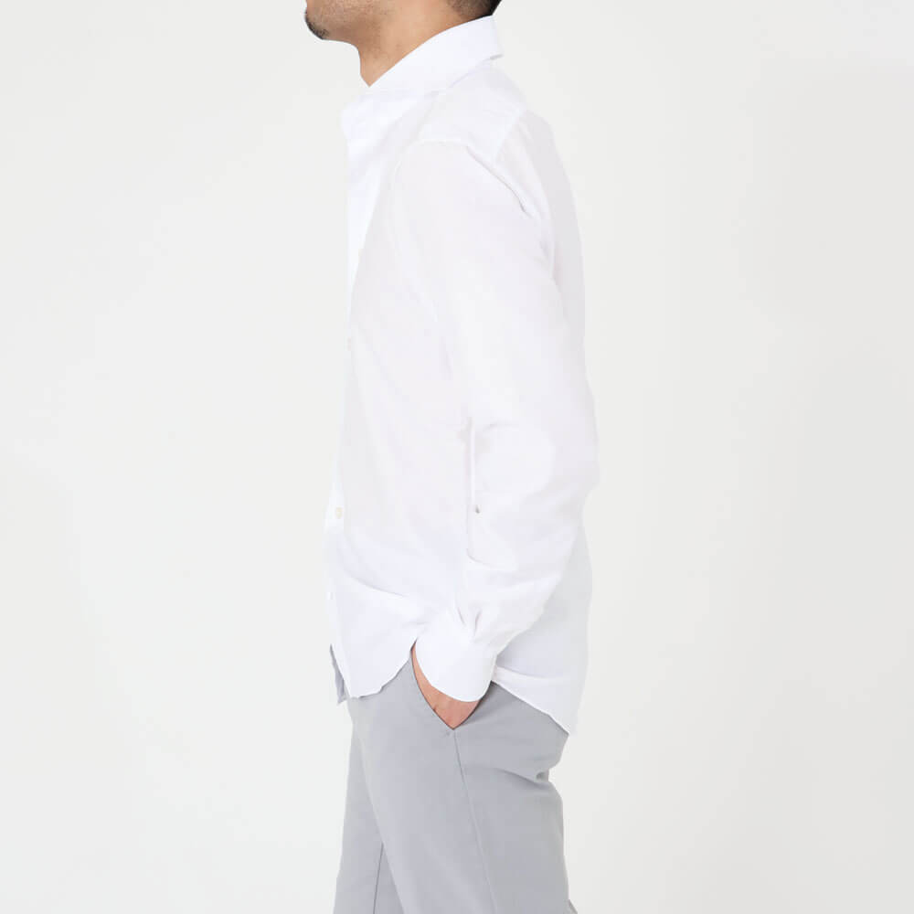 ・狭めな肩幅が特徴的な「Finamore (フィナモレ)」のシャツは、その肩幅からは想像も出来ないほど動き易く、フィット感に長けています。その秘密はいせ込み+前ふりの袖付け。フィット感はありながら、身体にまったくストレスを与えず、極上の着心地です。
