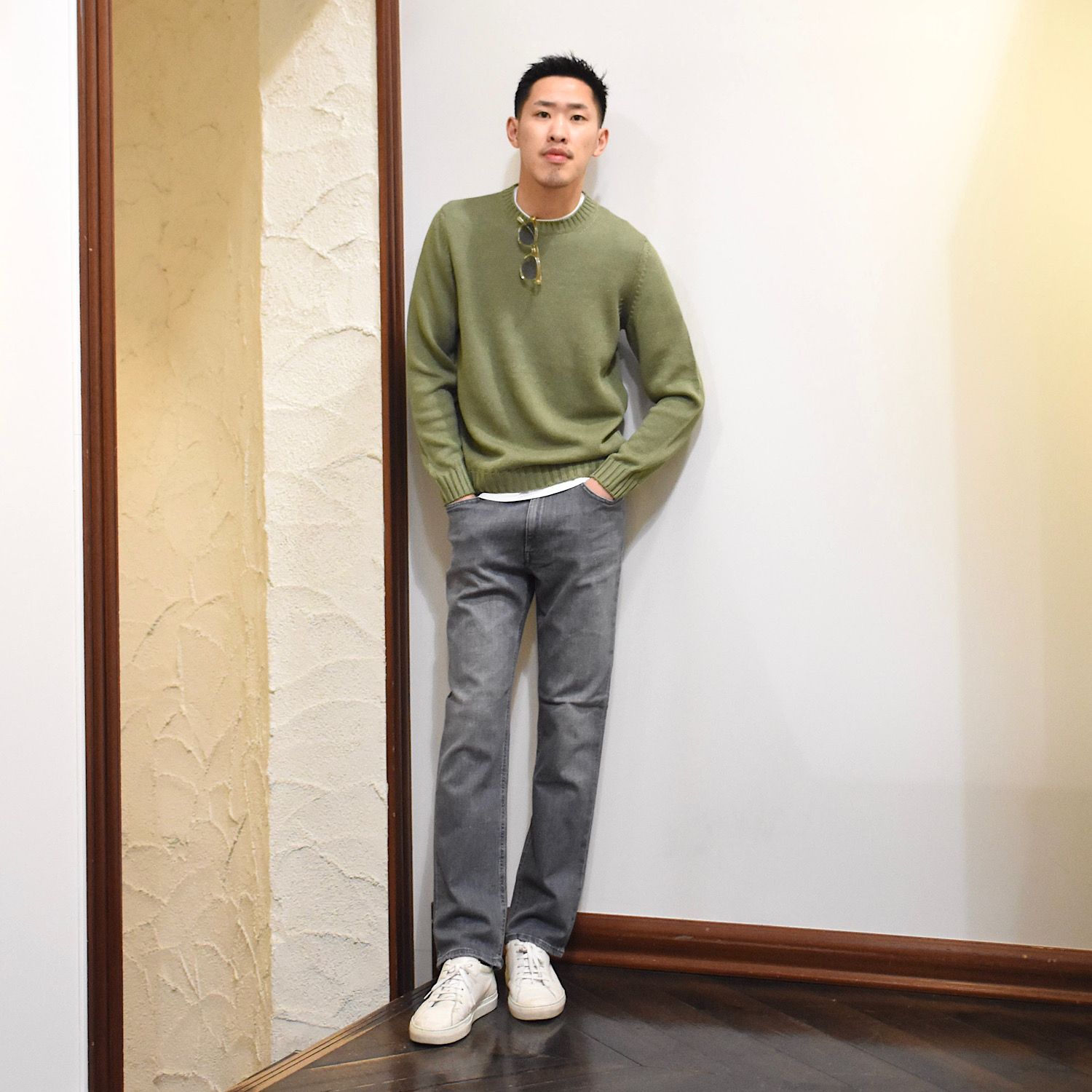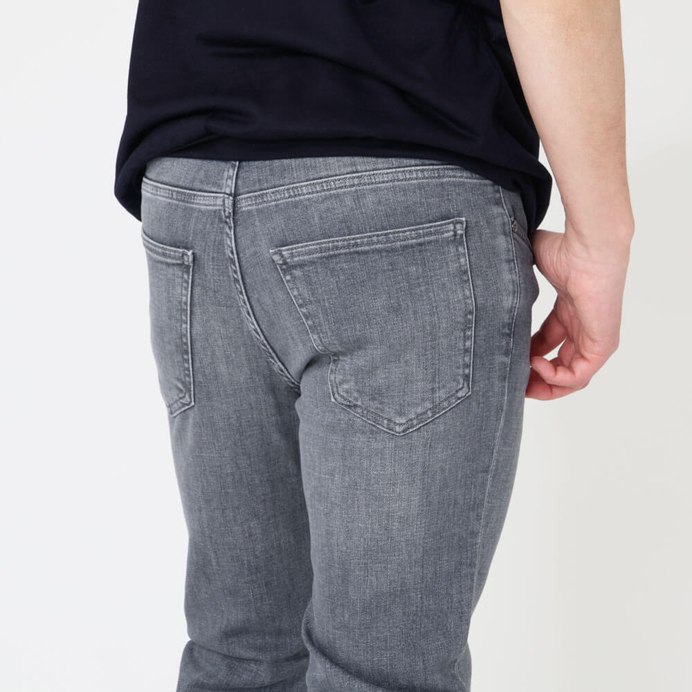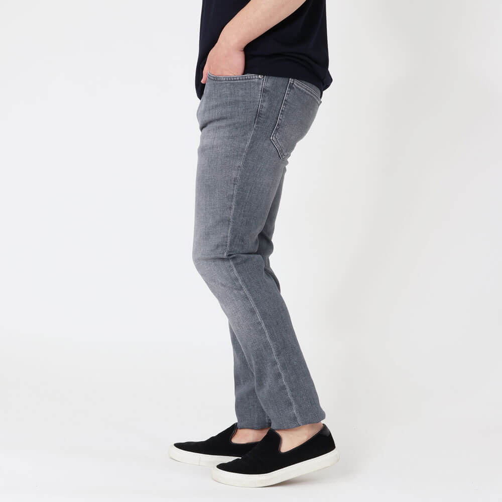 ・ヒゲやアタリのあるグレーデニムではあるものの、全体的に淡いグレートーンに仕上げられており、軽やかさのある一本。柔らかな風合いでストレッチ性も高い。