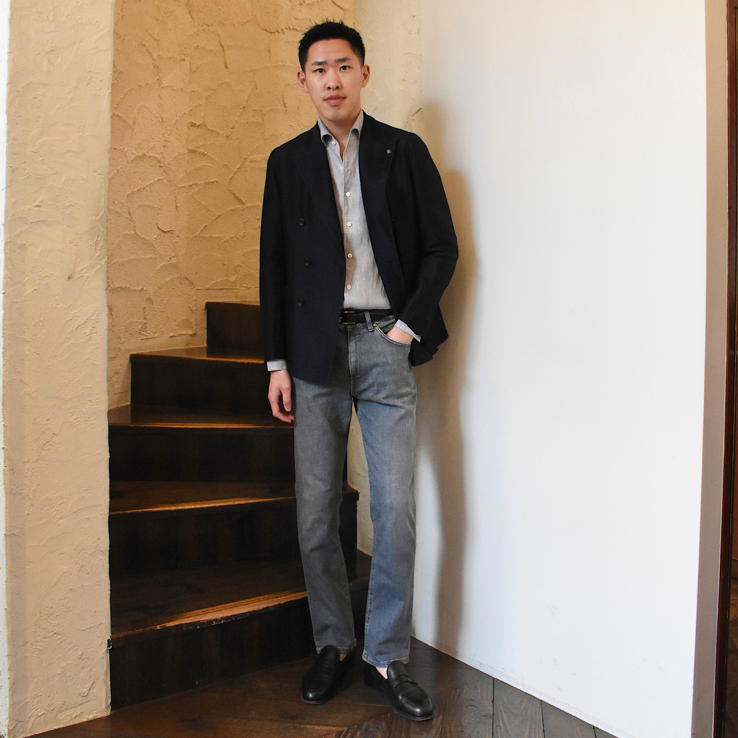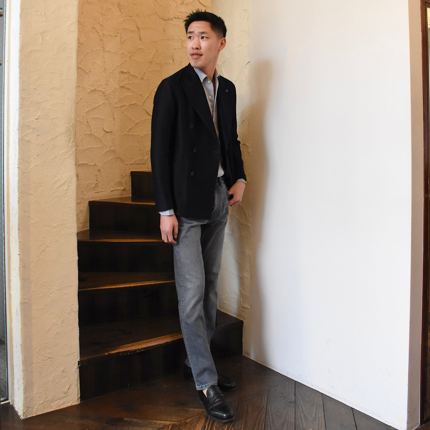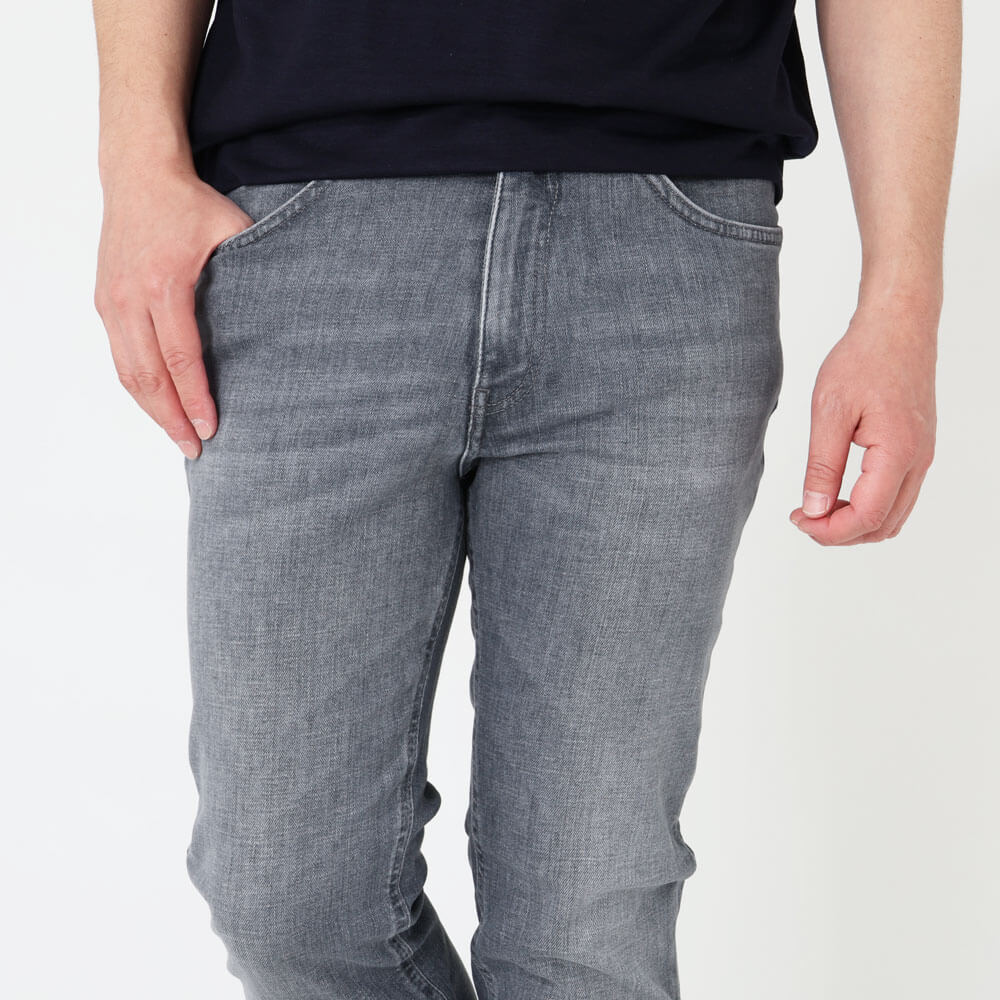 ・ヒゲやアタリのあるグレーデニムではあるものの、全体的に淡いグレートーンに仕上げられており、軽やかさのある一本。柔らかな風合いでストレッチ性も高い。