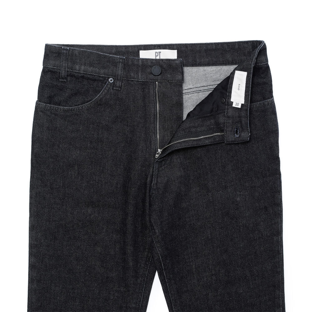 ・モデル"BAND"は、PTらしくやり過ぎ感のないストレートシルエット。トップスをタックインするにも適した股上の深さから生まれるゆとりを感じさせるワタリ、そしてほんのりテーパードはしているものの、それを感じさせないストレート感あるシルエットが特徴です。