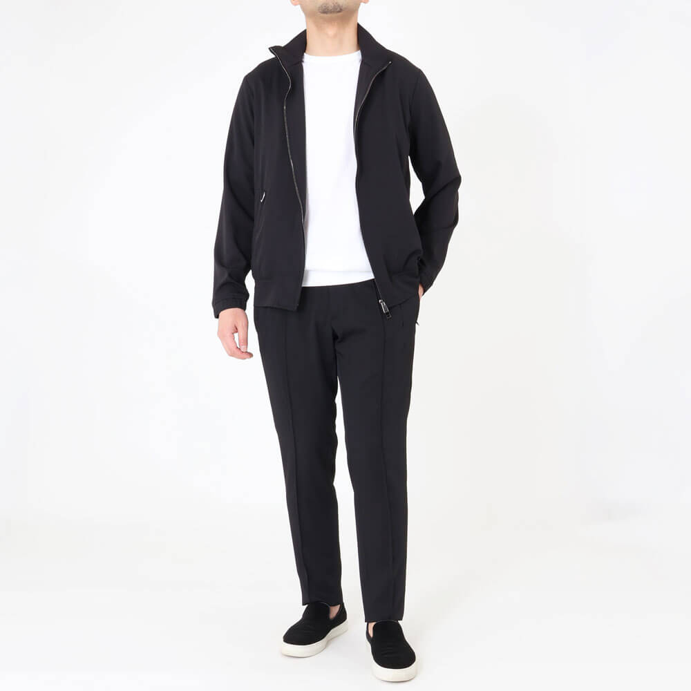 スマートなシルエットに加え、程よく高さのある襟がオトナの雰囲気を演出します。襟周りには適度なゆとりがあり、首元に窮屈さが出ず抜け感のある印象です。ZIP付きポケットはデザインのアクセントでありながら、中身が落ちにくい実用性も兼備。シワになりにくく非常に軽いため、日常使いから長時間の移動まで安心して着られます。サイズ44を着用し、ちょうど良いサイズ感でした。