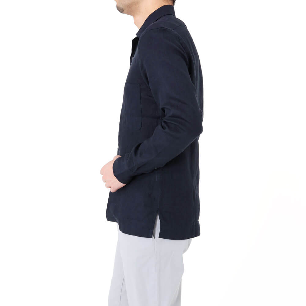 ・裾はスクエアでサイドスリット入り。着丈はタックイン/タックアウト両方に対応できる長さに設定しています。