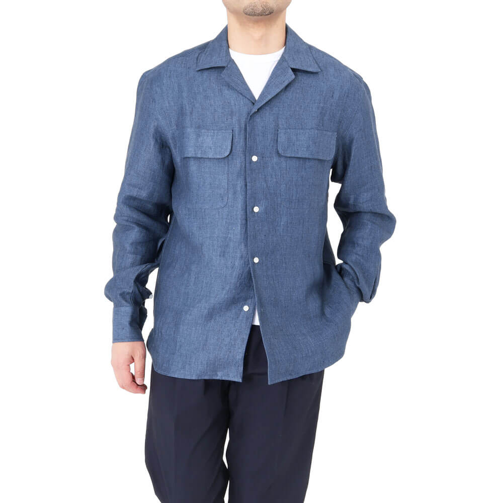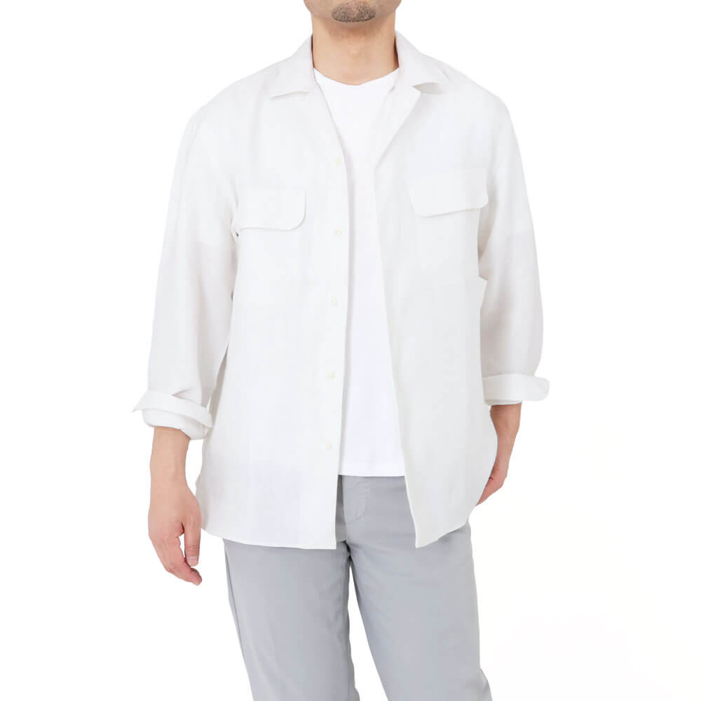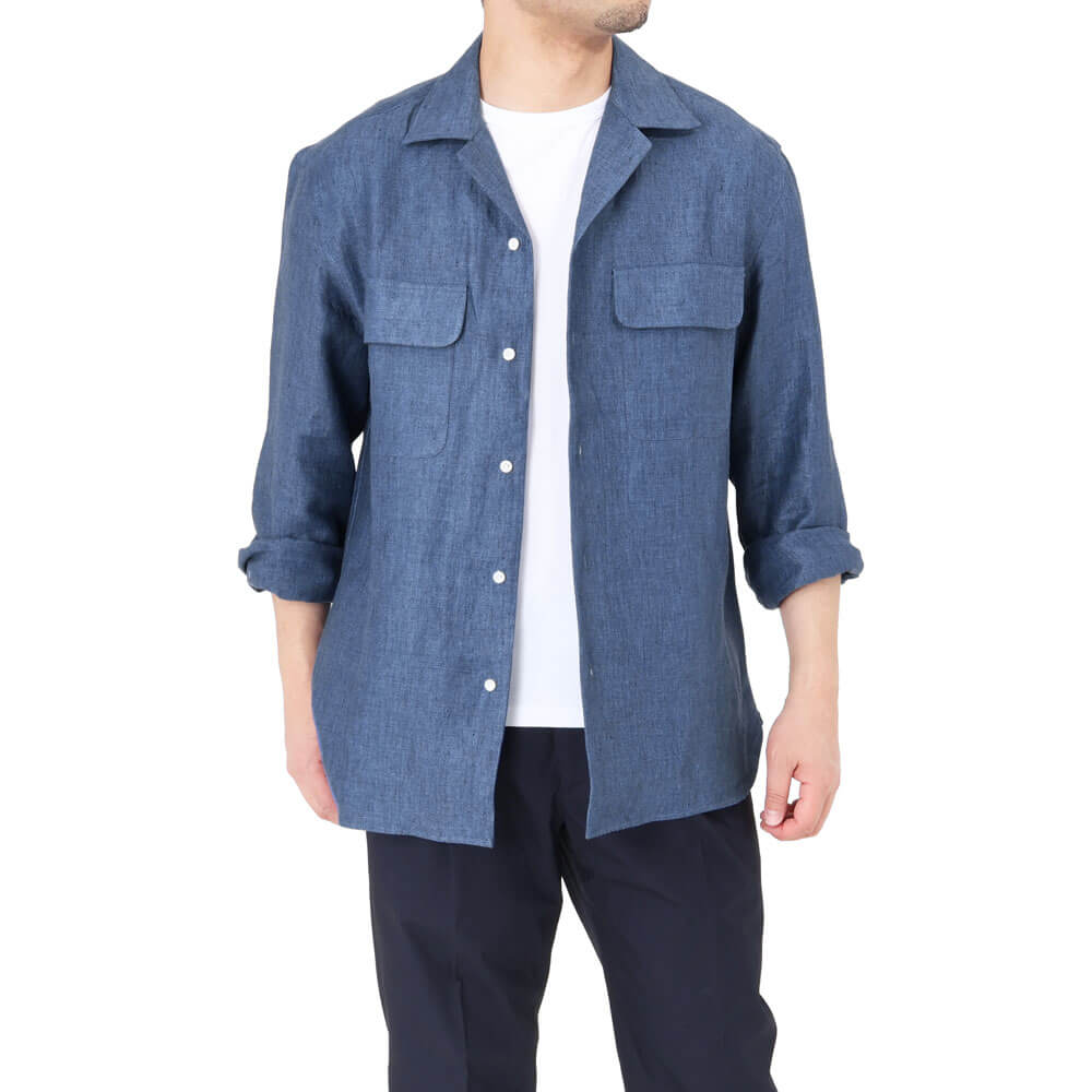 ・生地はしっかり感のあるツイル(綾織り)リネン100%。オーバーシャツ用に用意されている生地のため、羽織るのに適したほどよい厚みです。着用する度に馴染む風合いの良さが楽しめます。全3色(ブラウンベージュ)のラインナップ。