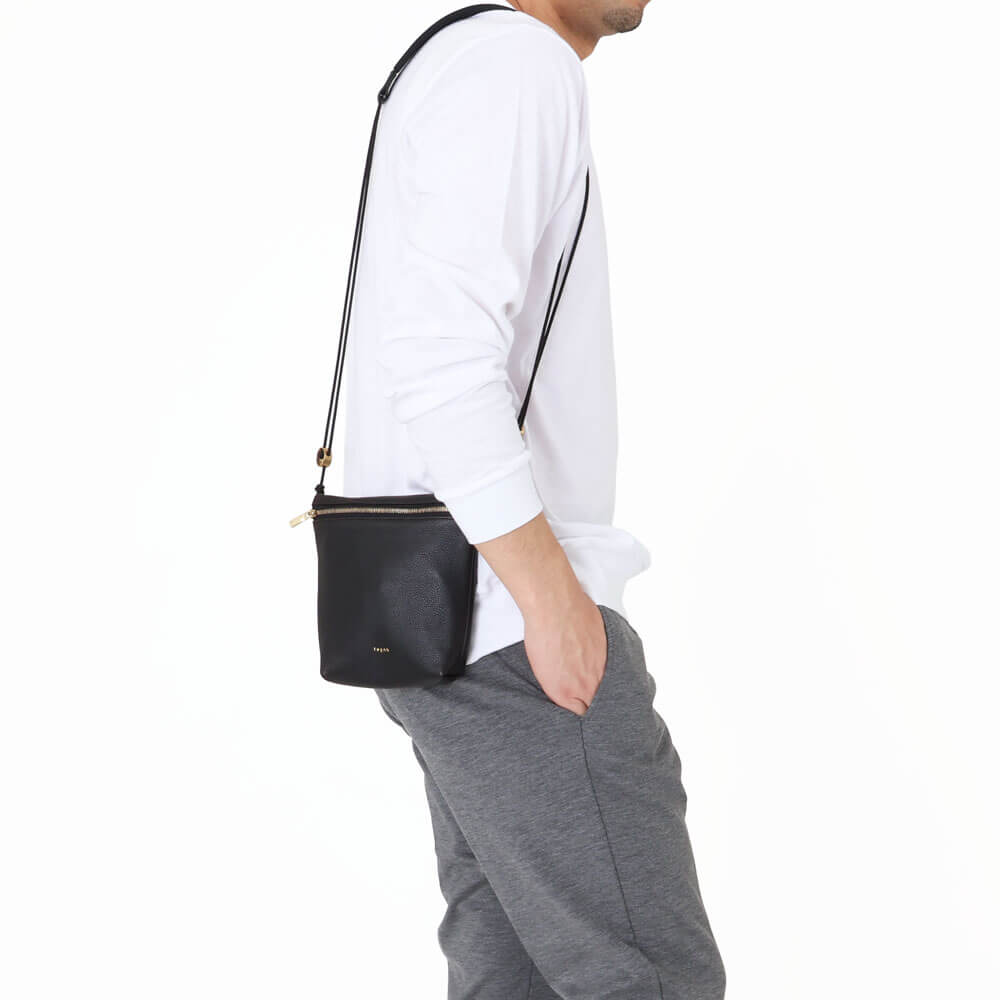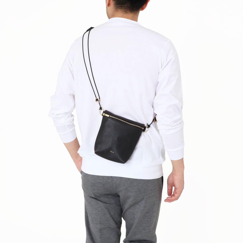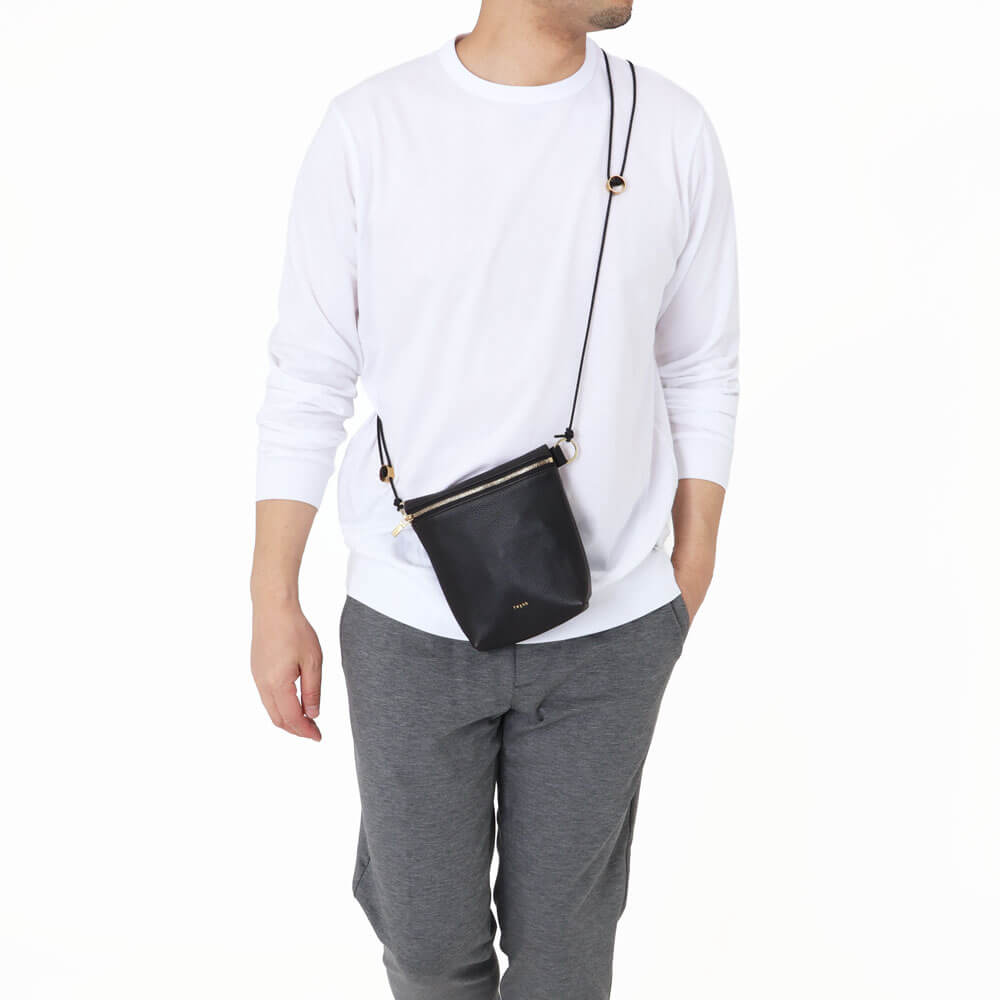 SQUARE ZIP SHOULDERより小さく、さらに身体に寄り添うショルダーポーチです。
