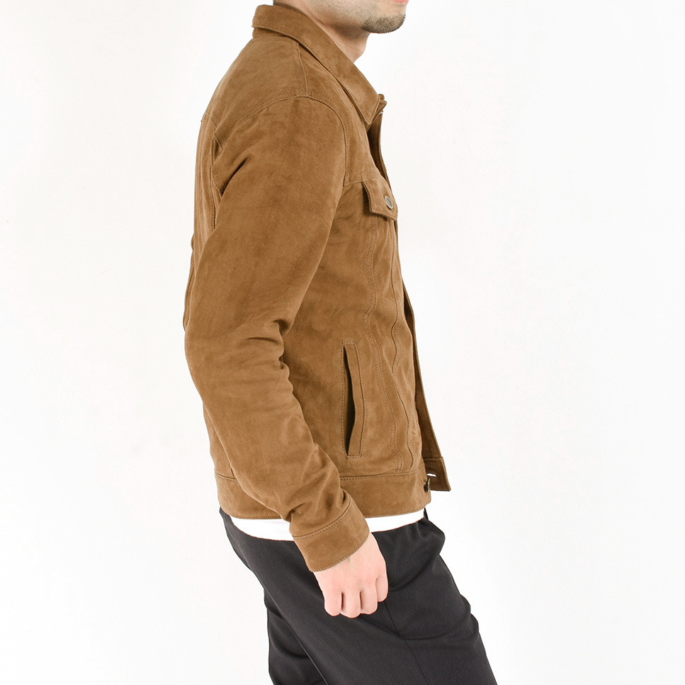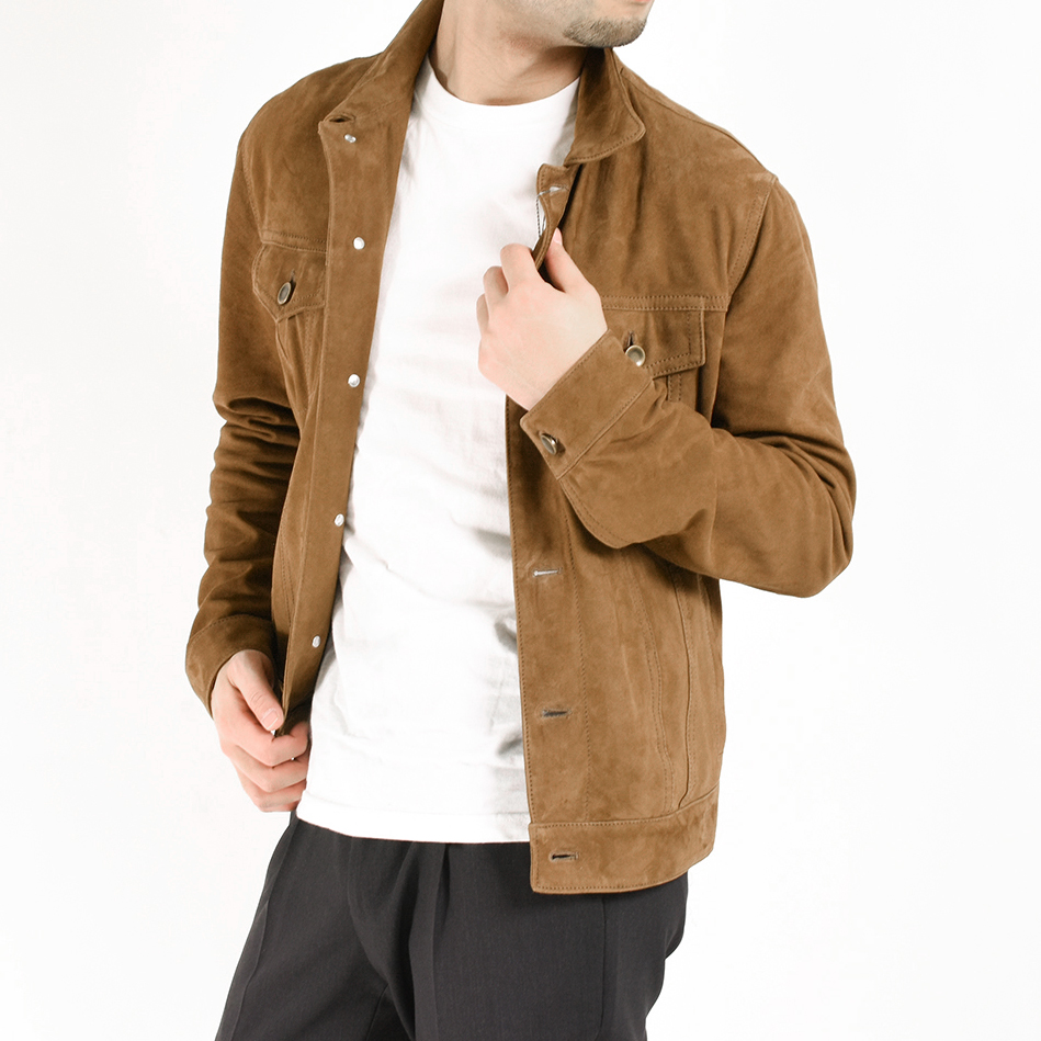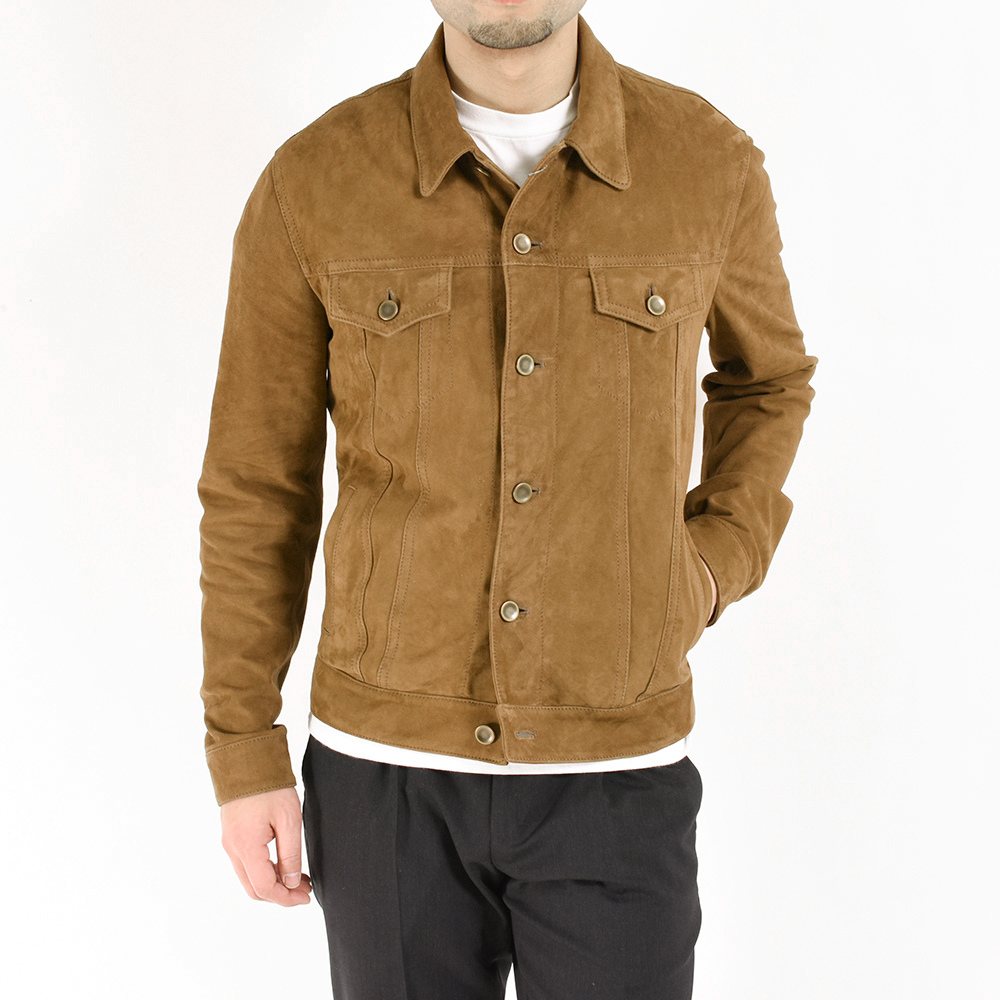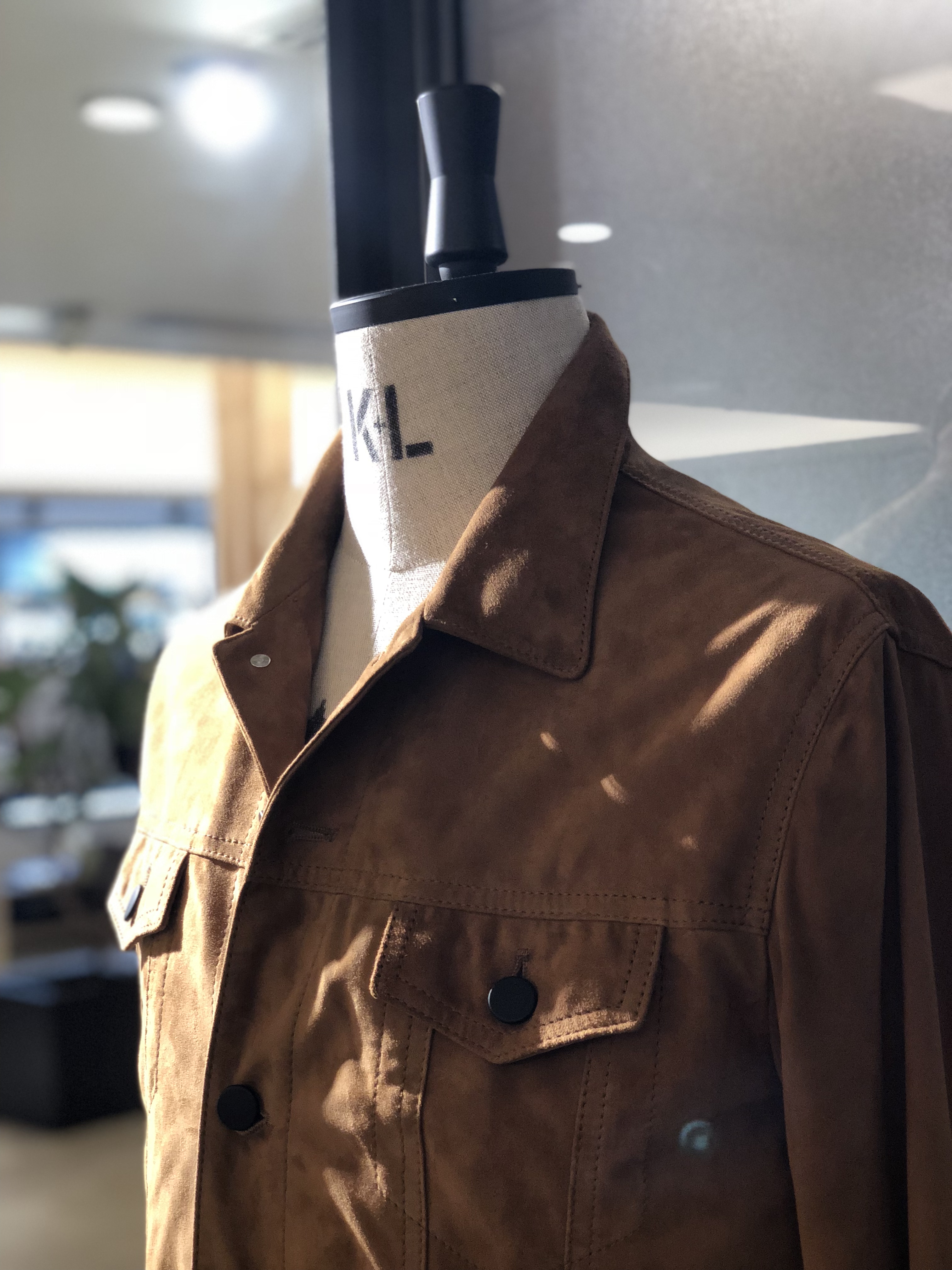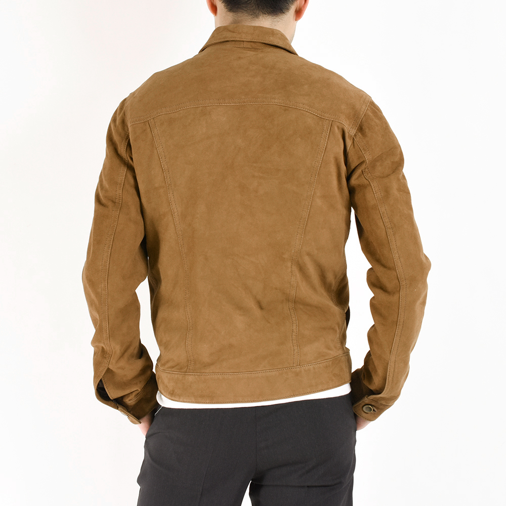 ・キャメルブラウンスウェードゆえの上品さ、適度なサイジングによるフィット感の良さが秀逸。また、B.R.SHOPではボタンの色変更をリクエスト。ほんのりヴィンテージ感漂うブロンズ色のボタンが付属しています。