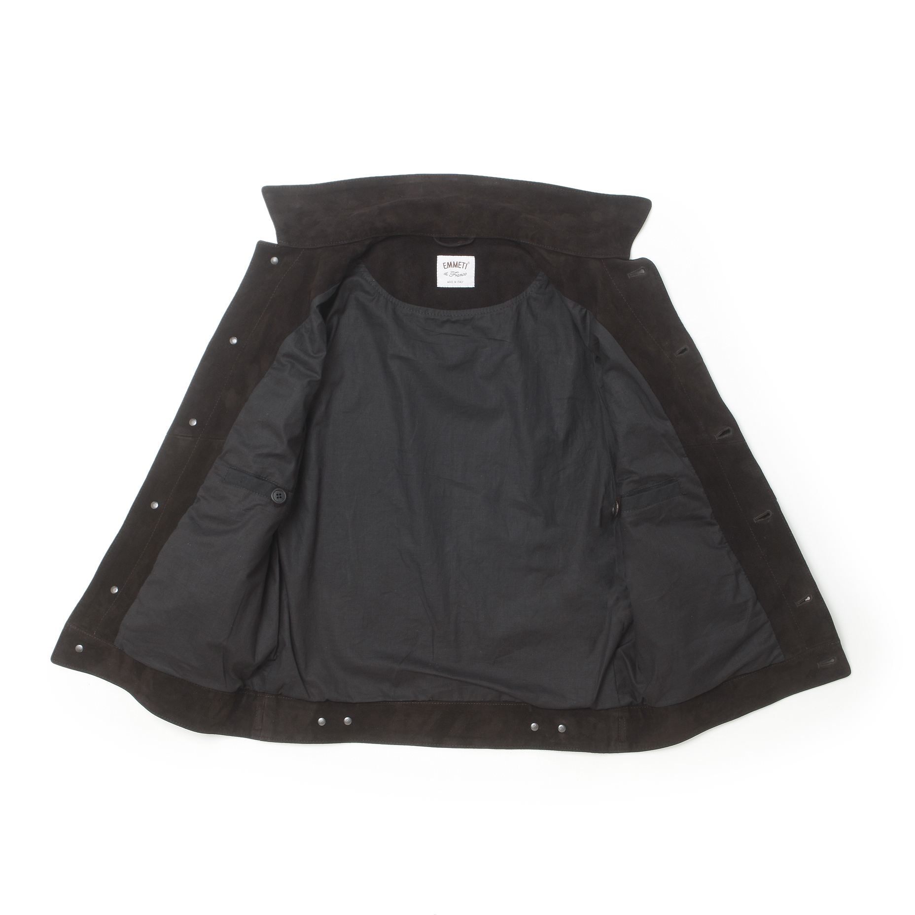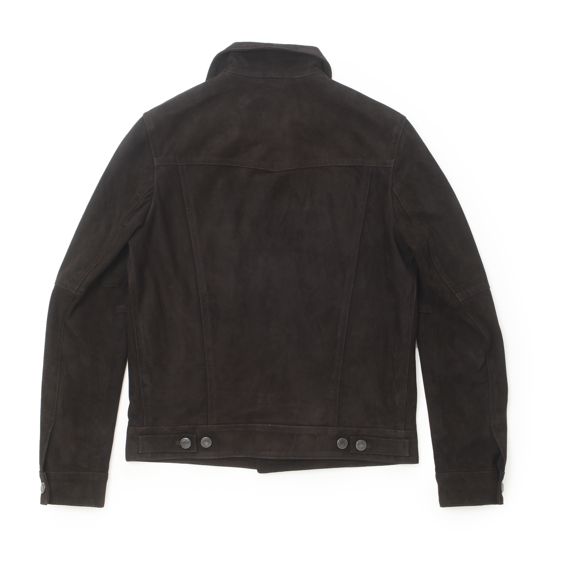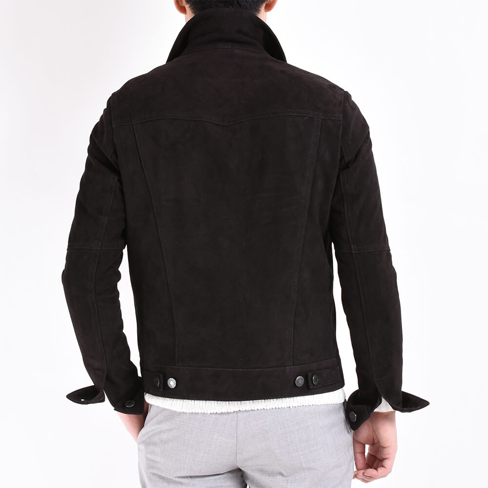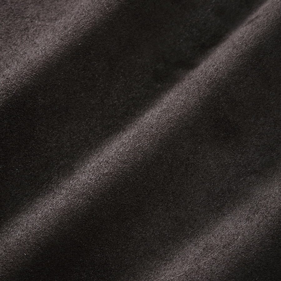 ・B.R.SHOPでは、汎用性あるダークブラウンとネイビー、そして上品なオフホワイトと3色をご用意。こちらのダークブラウンにはスウェード素材と馴染むようなブロンズのメタルボタンが付属しています。