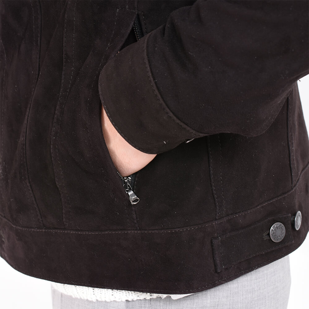 落ち着いたダークブラウンとスウェードの上品な質感が相性抜群。