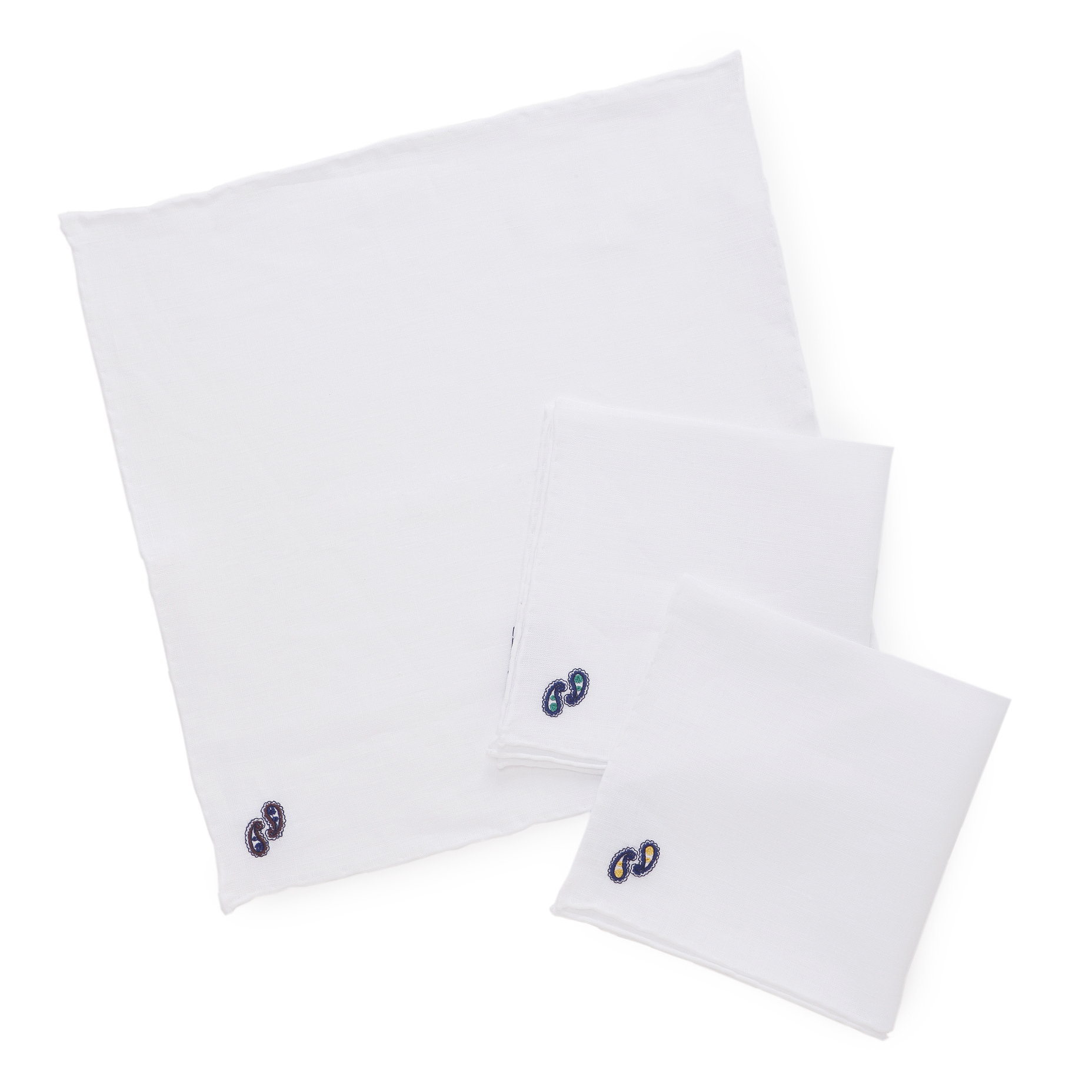 ・良質なリネンに丁寧に巻かれた縁のハンドロール仕上げ、そしてワンポイントのペイズリー柄刺繍と「FRANCO BASSI(フランコ バッシ)」の確かなクオリティーとセンスを感じさせる一枚。使い勝手の良さも魅力です。