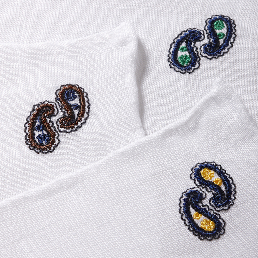 フランコ バッシ / ペイズリー刺繍入り チーフ(リネン)/U19E-1010