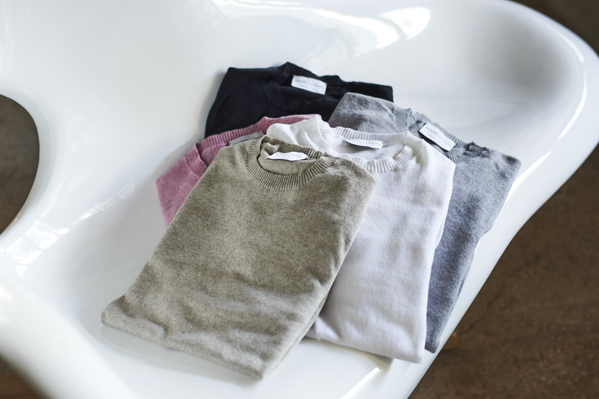 ・さらに従来の「Settefili Cashmere(セッテフィーリカシミア)」のクルーネックよりもネック周りを少しだけ小さくすることで、伸びやすい春夏ニットの弱点を解消!ジャケットのインナーに合わせた際にも収まりが良いデザインに仕上げました。