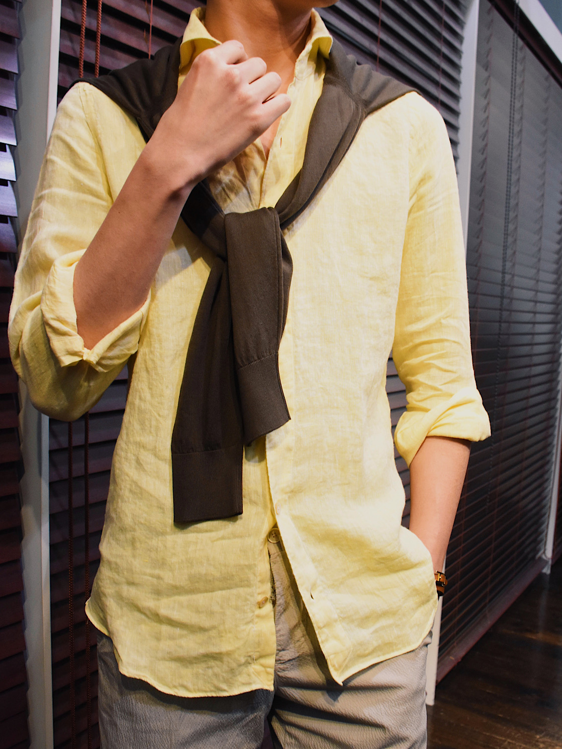 ・生地は「Finamore (フィナモレ)」春夏シーズンの定番であるリネン。多色展開を得意とするBRらしく全10色をラインナップ!ベーシックカラーに加えて今シーズンらしいスモーキーな色合いも揃えましたので、気分やコーディネートに合わせてお選び頂けます。