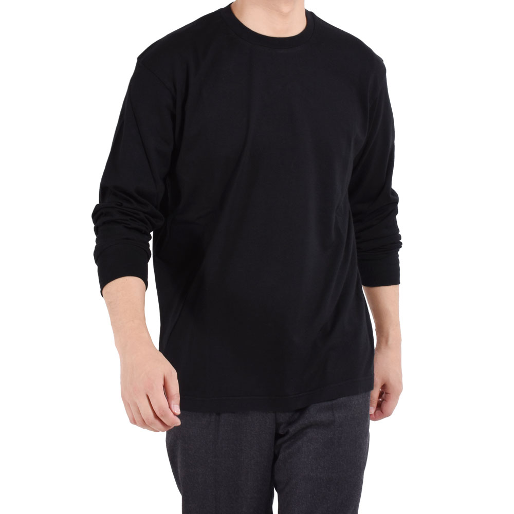 ・リラックス感ある着心地ゆえ、自宅での着用はもちろんのこと、そのまま外出しても見映えは十分。また、秋冬シーズンのジャケットやブルゾンのインナーにもピッタリ!長袖なので袖裏地が肌に触れることが無く、袖リブによって手首で留まるのでジャケットやブルゾンの袖から出過ぎてしまうということもありません。リモート会議含め、ニューノーマルな生活様式のマストアイテムと言えるでしょう。