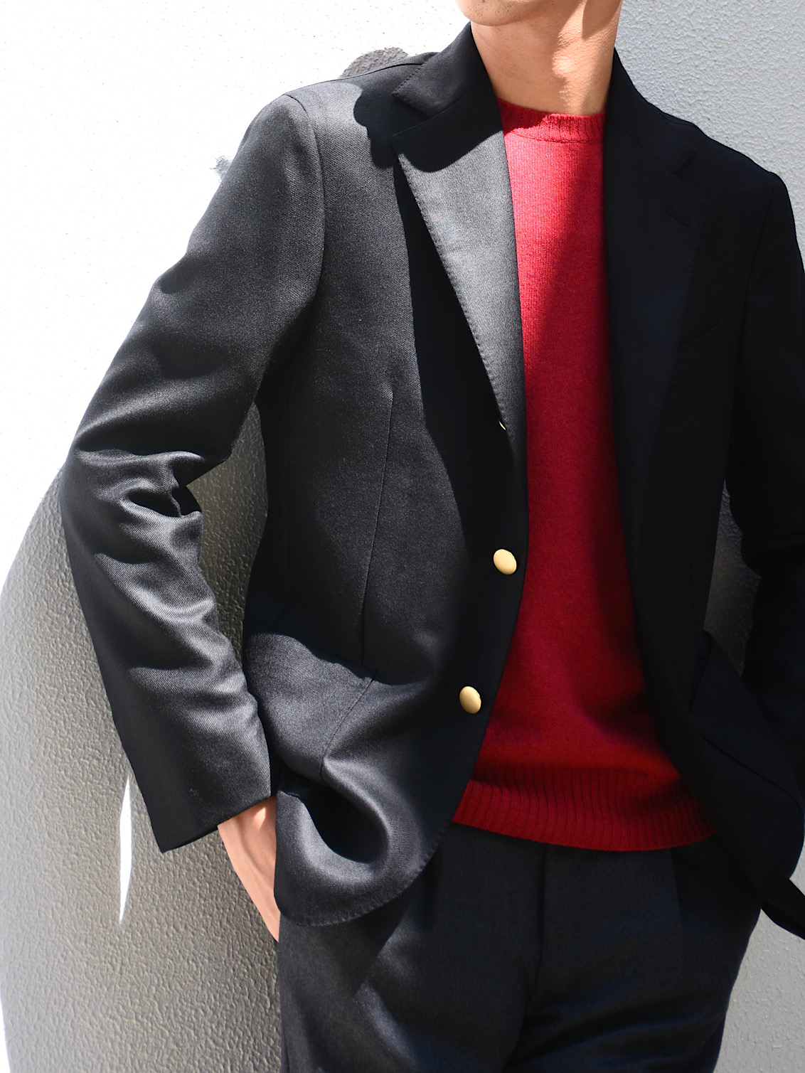 ・ジャケットのモデルはハーフキャンバス仕立て3つボタン2パッチポケットの"POSILLIPO"。