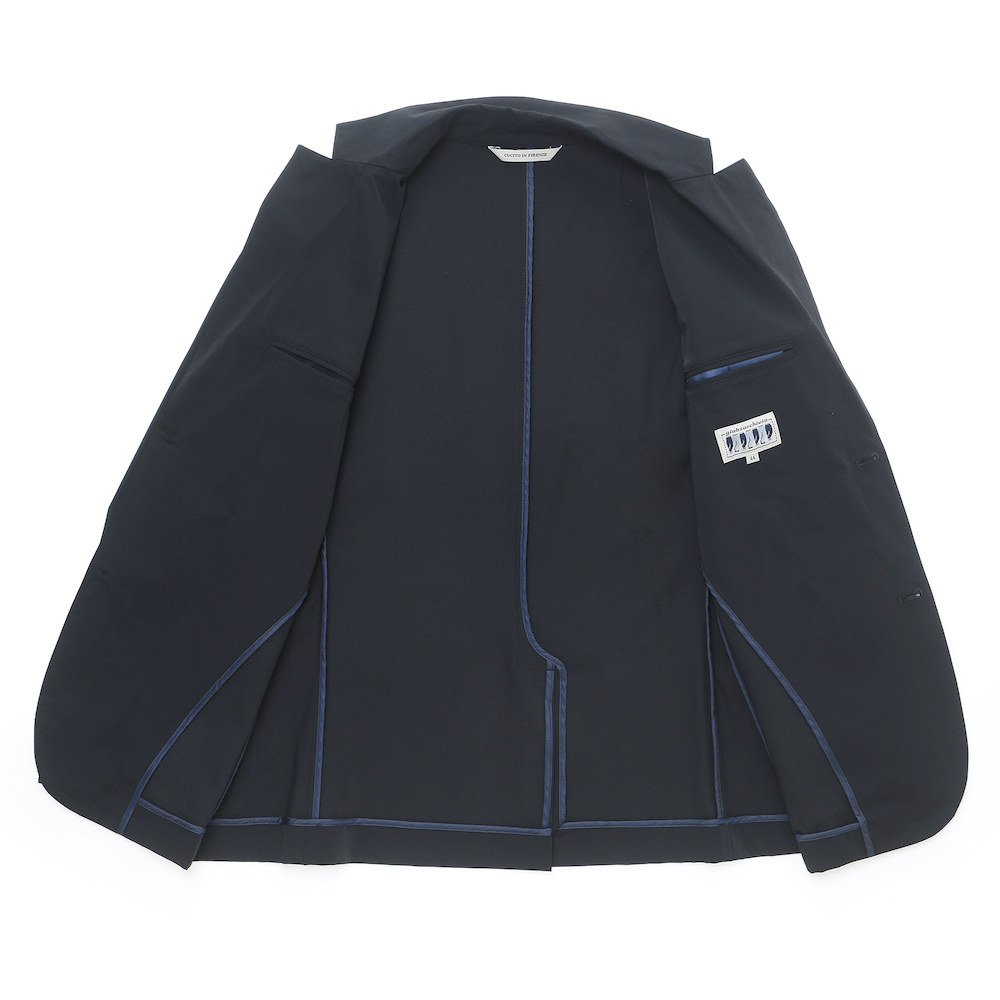 ・ジャケットの要となるカラーとラペルはしっかりと二枚仕立てで、前身頃は大見返し仕様。また肩パッドは無しで柔らかく実に軽い着心地が楽しめます。