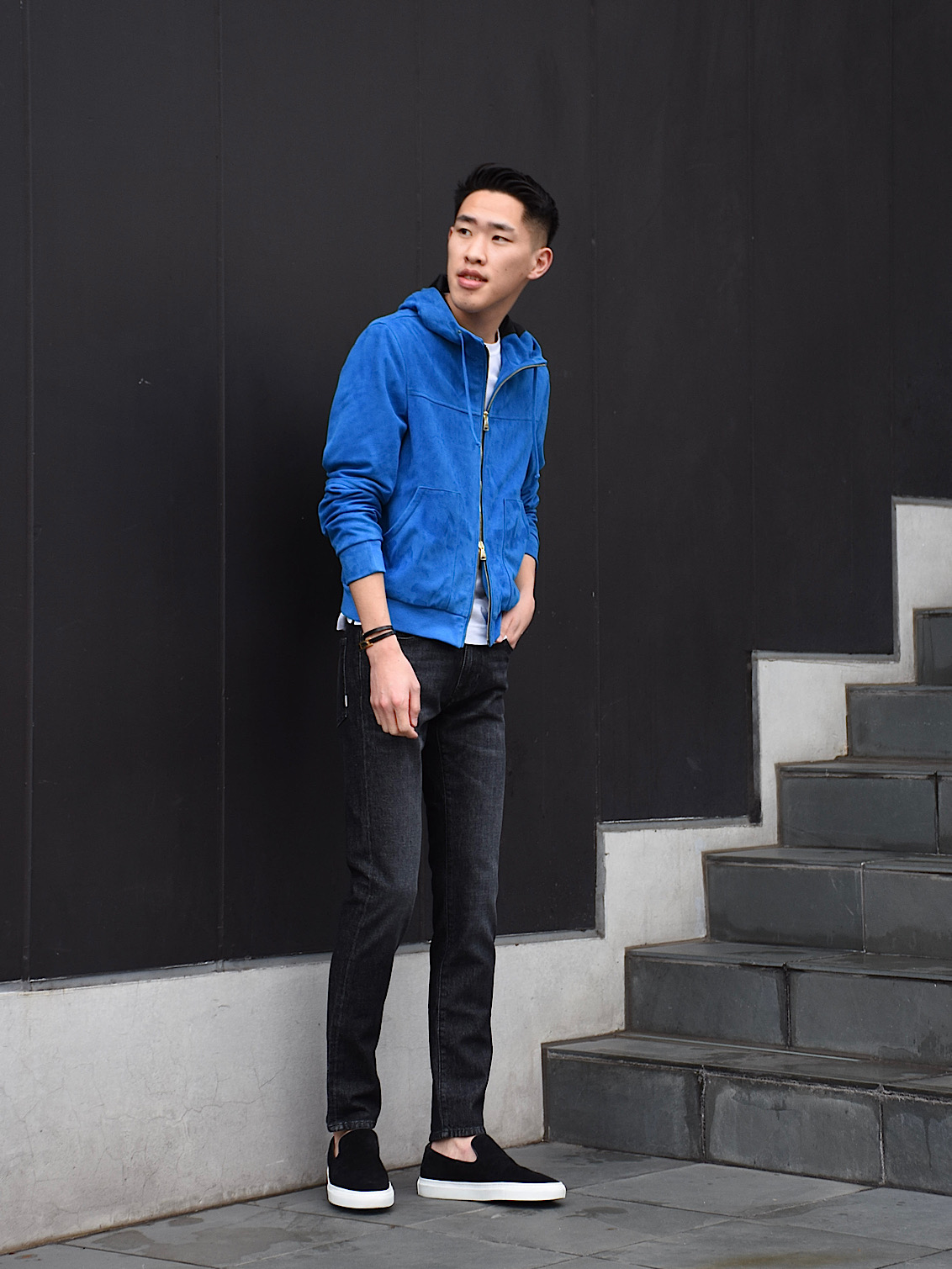 しっとりとした肌触りのスウェードを使用し、存分にラグジュアリー感を醸すこちらのパーカー。これ一着で、ラグスポスタイルは完成しますね!ちょいユルなシルエットでありながら、裾にリブが付いているので、メリハリのあるバランスに仕上がっています。また、ジップはラグジュアリーな雰囲気を醸すゴールド。大人の休日の羽織り物として、大活躍するのは間違いなし!パンツはスラックスを合わせてちょいキレイめに。または、スウェットパンツをあわせてスポーティに。そして、デニムを合わせるとカジュアルに。合わせるパンツによって、コーディネートのバリエーションを数多く楽しんでいただけます!