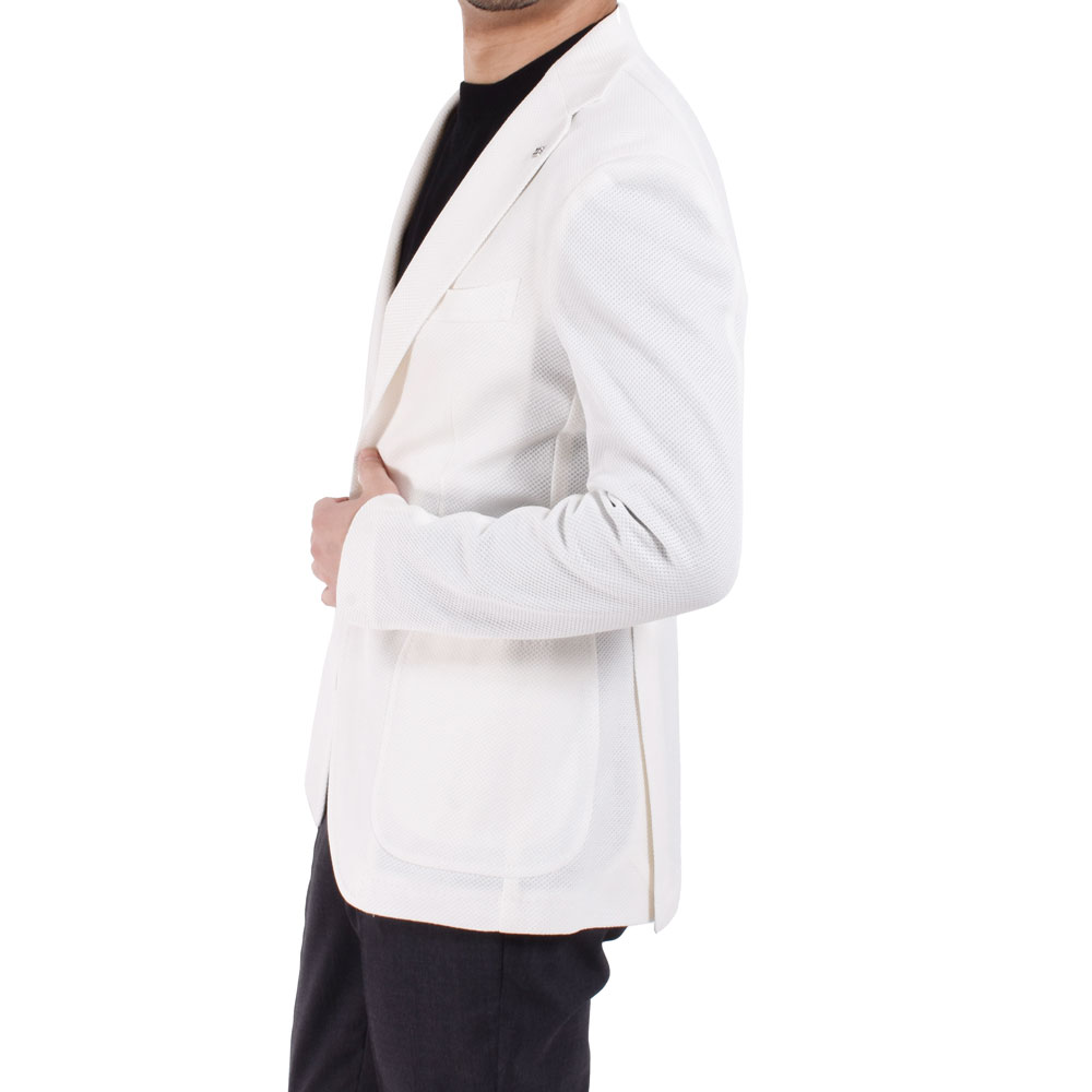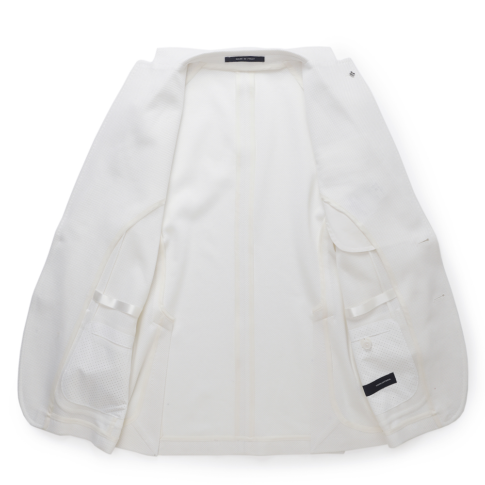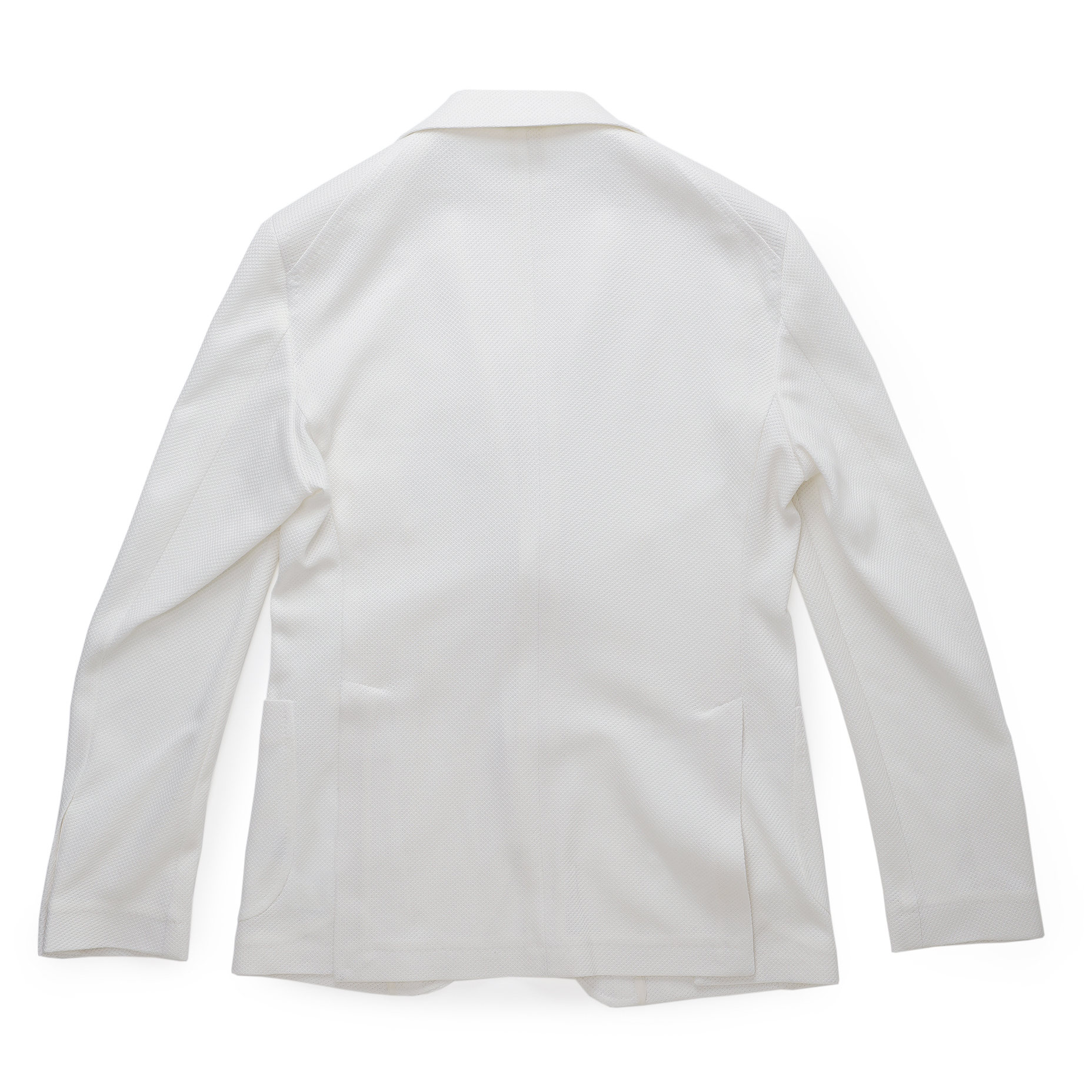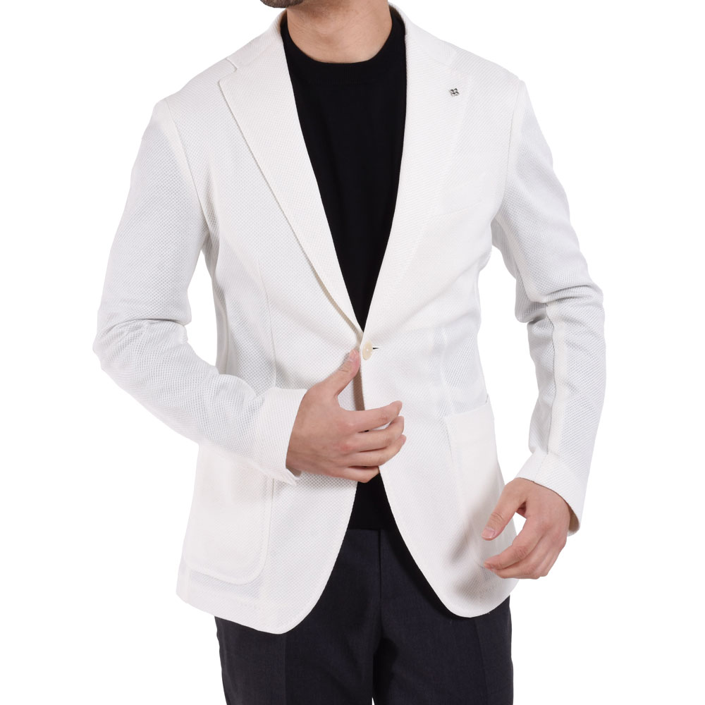 サラリとした肌触りで通気性抜群の生地を使用したタリアトーレのジャケット。モデルはG-DAKAR22Kという事で、軽量感ありながらも身体のラインをきれいに見せてくれるのがポイント。白なので、少々キザに見えがちかと思われますが、ジャージー生地を使用しており、程よくカジュアルなのでそれが良い塩梅に。着心地は伸縮性があって非常に楽!固く見え過ぎず、ほんのりリラックスした印象が今の時代に求められるジャケットの代名詞でもありますね!