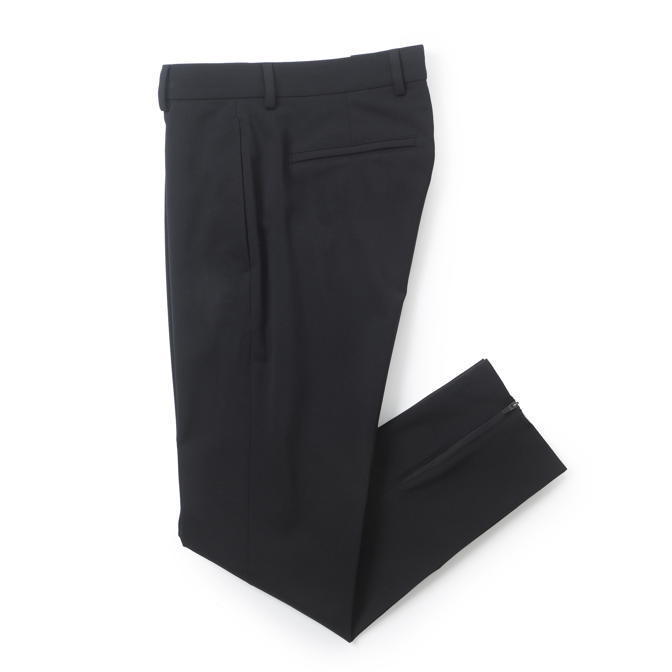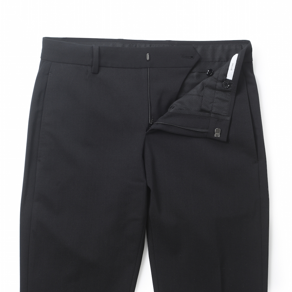 ・生地は、バイストレッチのテクノウール。端正な綾織りでドレス顔ではあるものの、どの方向にもストレッチが効いており、実に快適な穿き心地が得られます。全2色をラインナップ。