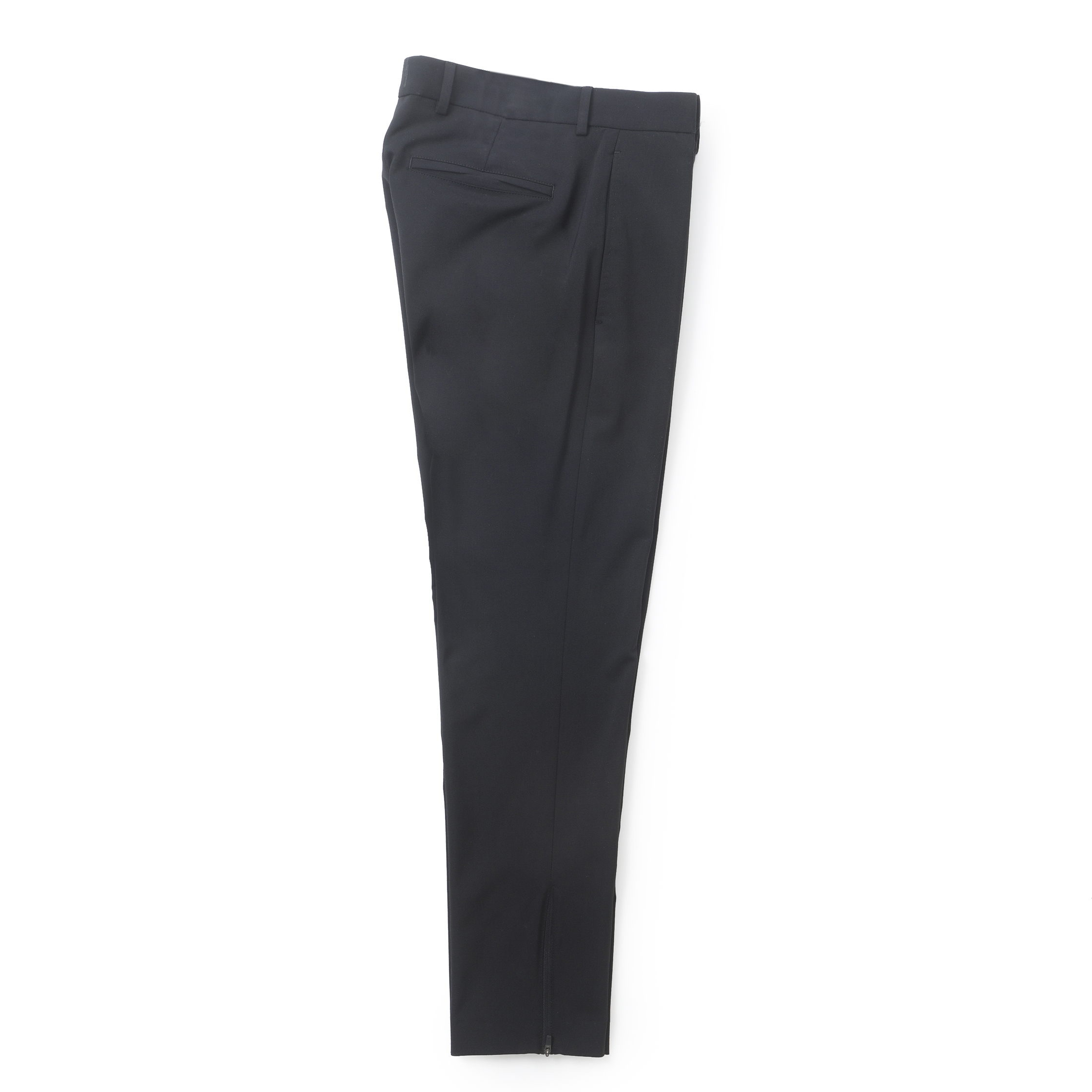 ・ノープリーツで適度に取られた股上、「PT TORINO(ピーティートリノ)」の特徴であるスッキリと切れ上がったヒップラインと計算されたテーパードラインはそのままに、さりげなく取り付けられたスソZIPによってシルエットにアレンジが加えられるのがこちらの"EPSILON"フィット。スポーティ且つモードな雰囲気を醸します。
