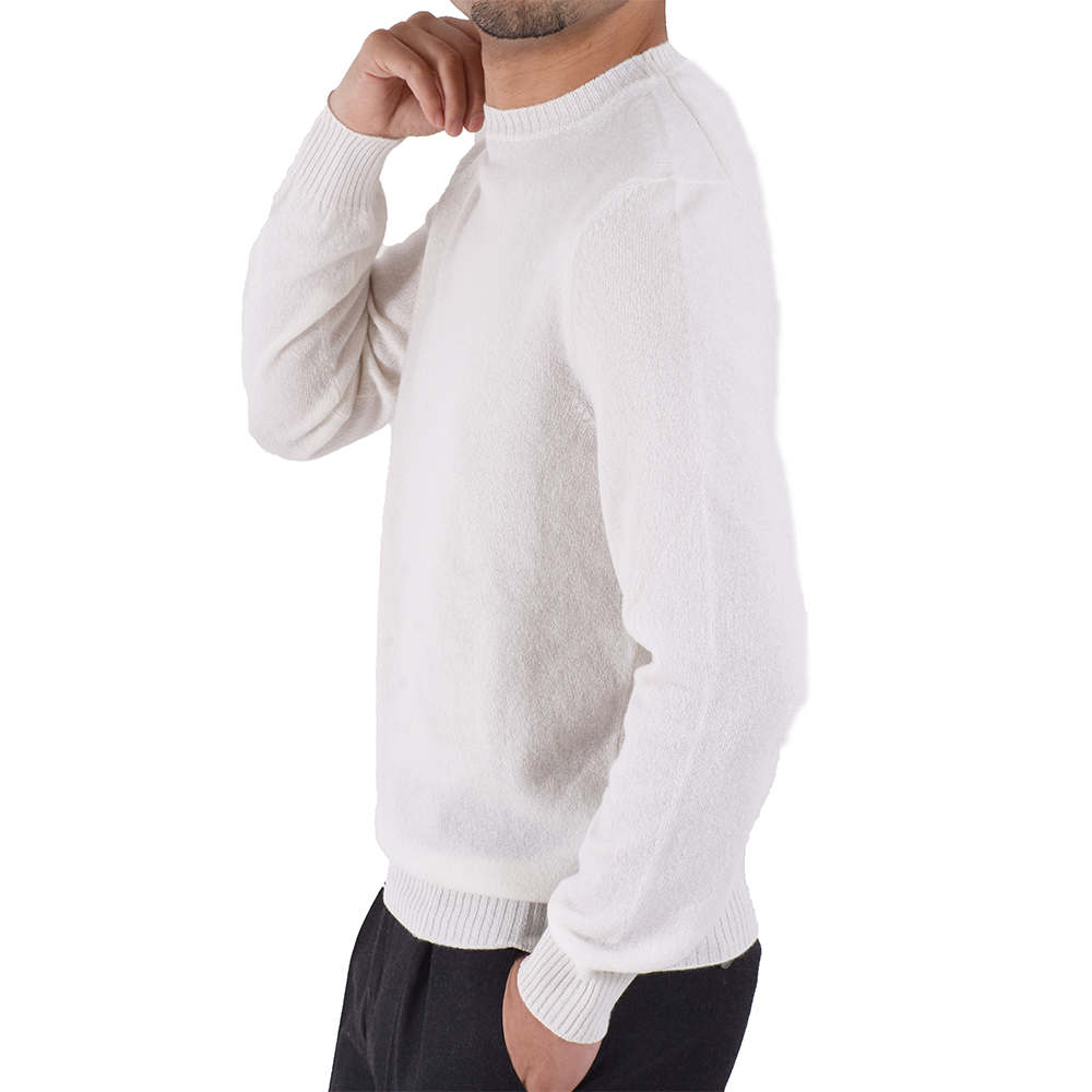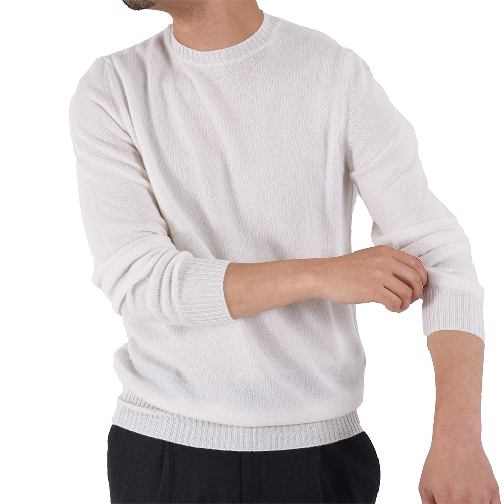 ・クルーネック部分のリブ幅は細めでモダンな印象を与え、軽快に着こなせます。ベーシックから挿し色まで全11色をラインナップ。同じ編み地で、Vネック、タートルネック、ジップアップもご用意しています。
