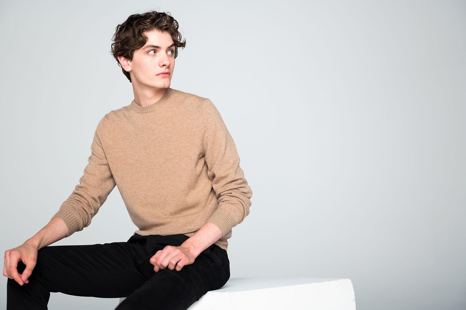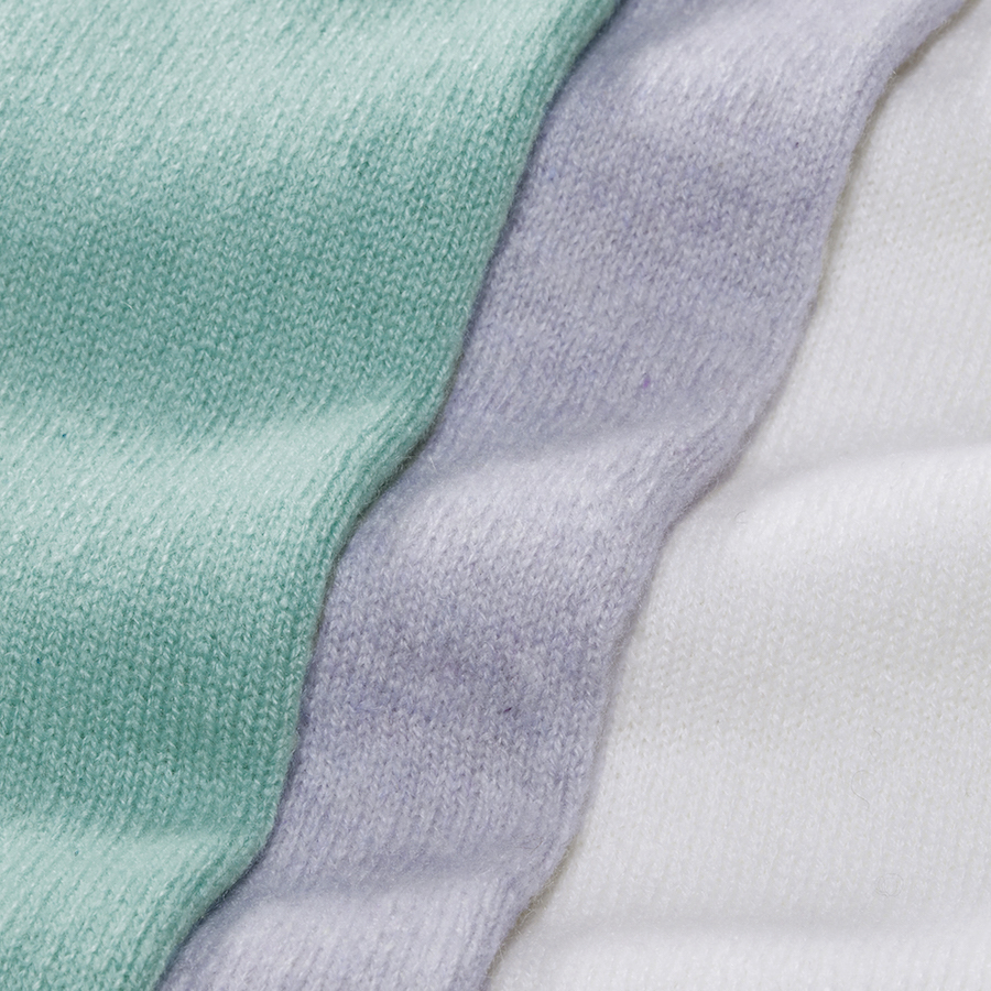 ・カシミア原毛を色によって使い分けているのも「FEDELI (フェデリ)」の特徴です。ホワイト原毛は薄い色目、ブラウン原毛は濃い色目に分けて製品染めすることで、鮮やかで深みある色合いを実現しています。