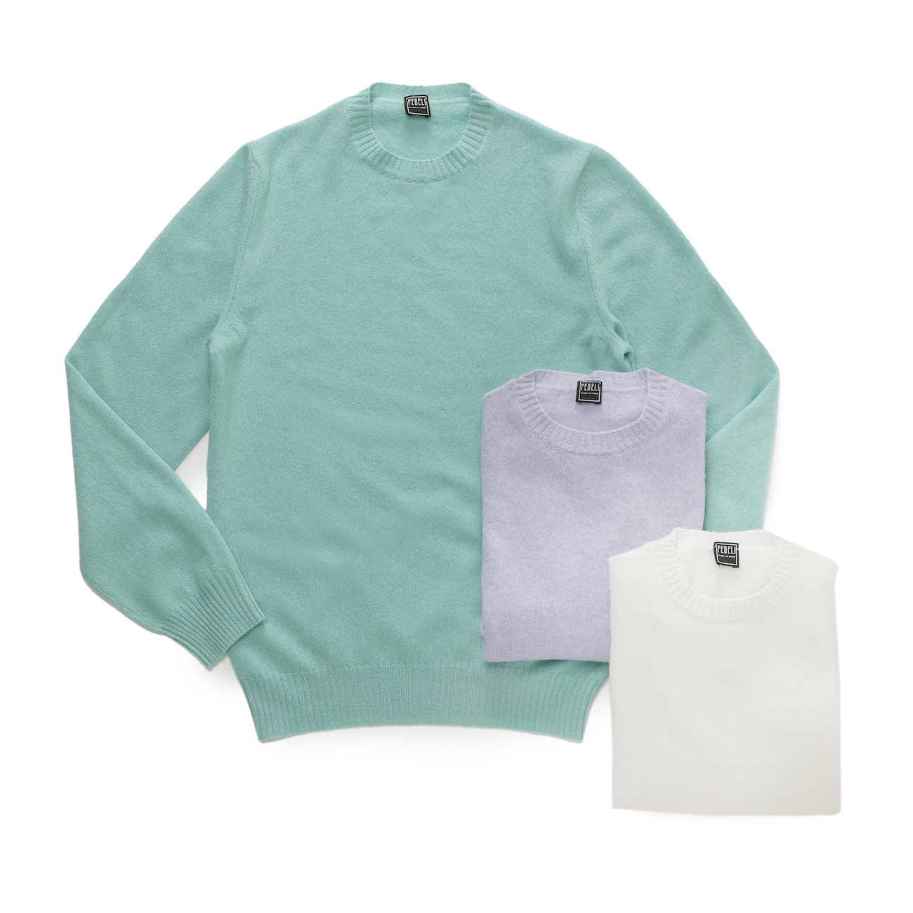 ・ニットの名門「FEDELI (フェデリ)」が使うカシミアはカシミアの中でも純度が高いものに限られており、そのカシミアから自社で糸を作り美しく編み上げた一着。