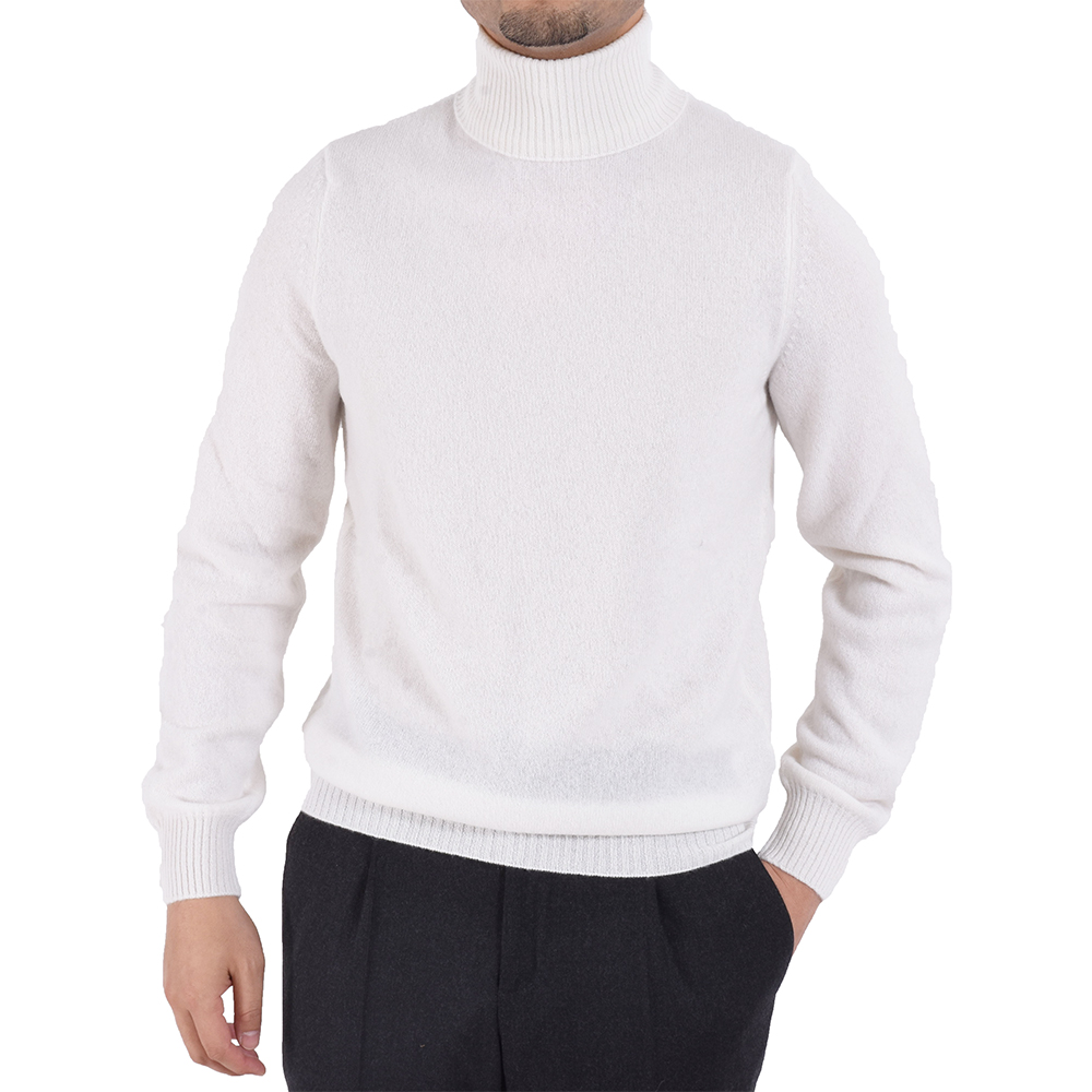 ・ニットの名門「FEDELI (フェデリ)」が使うカシミアはカシミアの中でも純度が高いものに限られており、そのカシミアから自社で糸を作り美しく編み上げた一着。