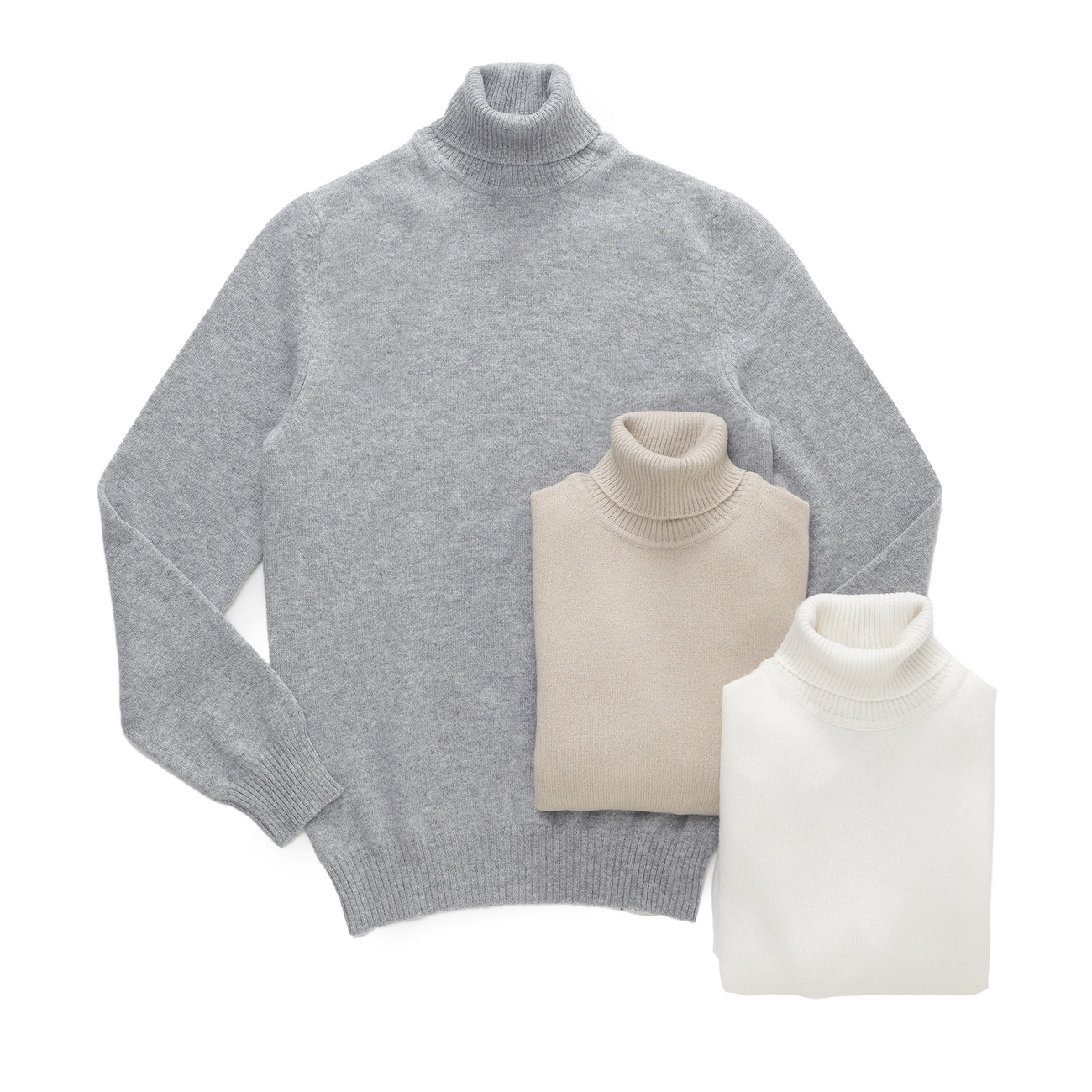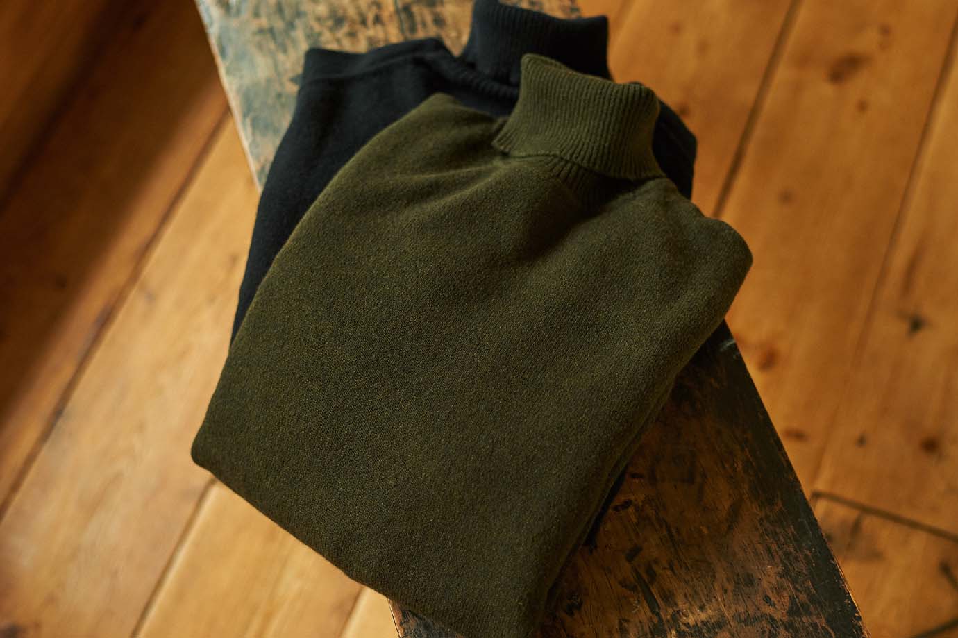 ・タートル部分の高さもパーフェクト。品良く見せたい時は折って、こなれ感を出したい時は折らずにくしゅくしゅっとさせてもOKです。ベーシックな全6色をラインナップ。同じ編み地で、クルーネック、Vネック、ジップアップもご用意しています。