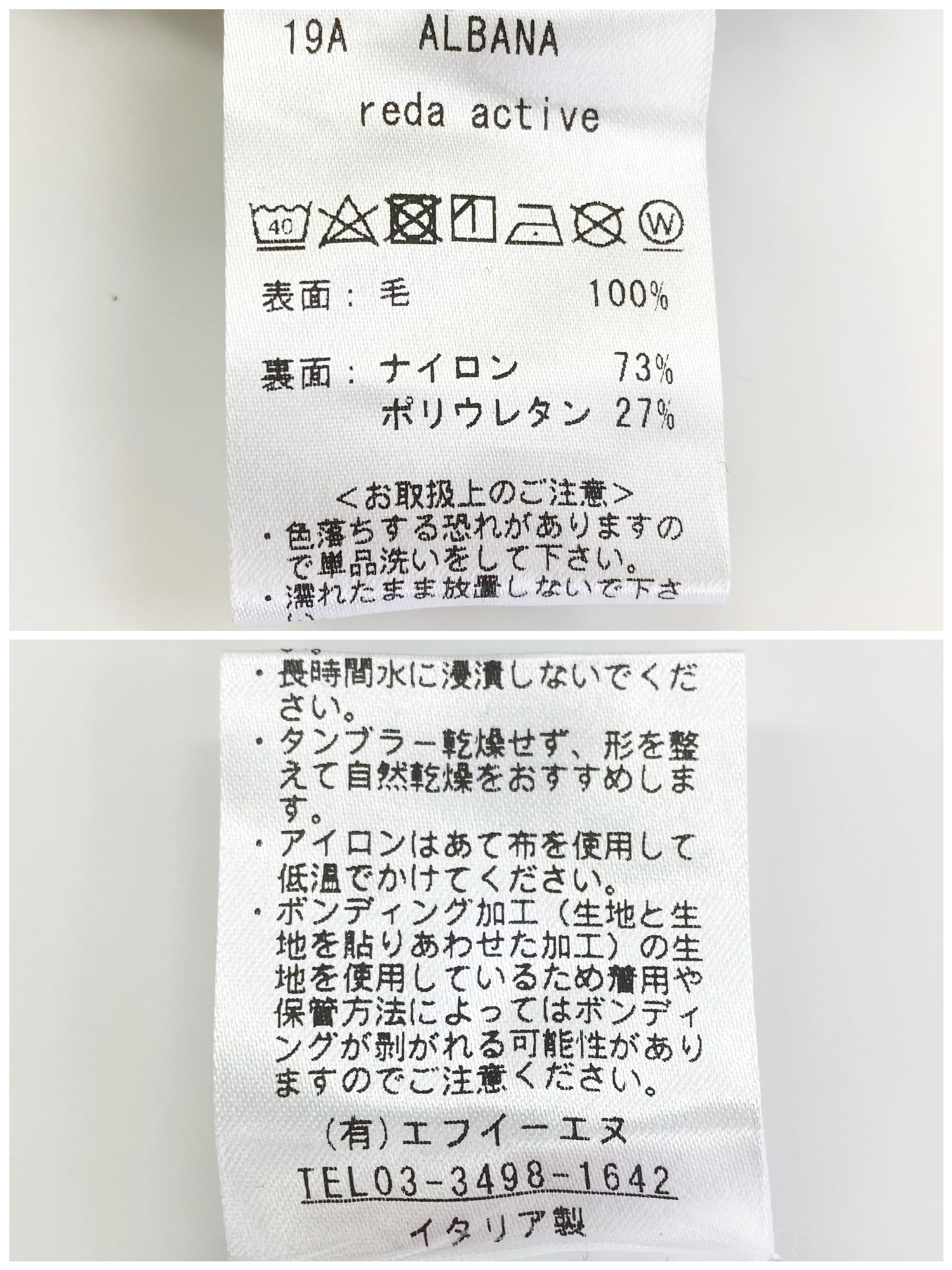 ・ラグジュアリー感を醸すのは素材も!表面の糸はSUPER120、裏面はナイロンとポリウレタンで編み立てたジャージーを特殊技術によってボンディングしたもの。イタリアでも指折りの高級ウール素材メーカーであるREDA社の”REDA ACTIVE”を採用しています。