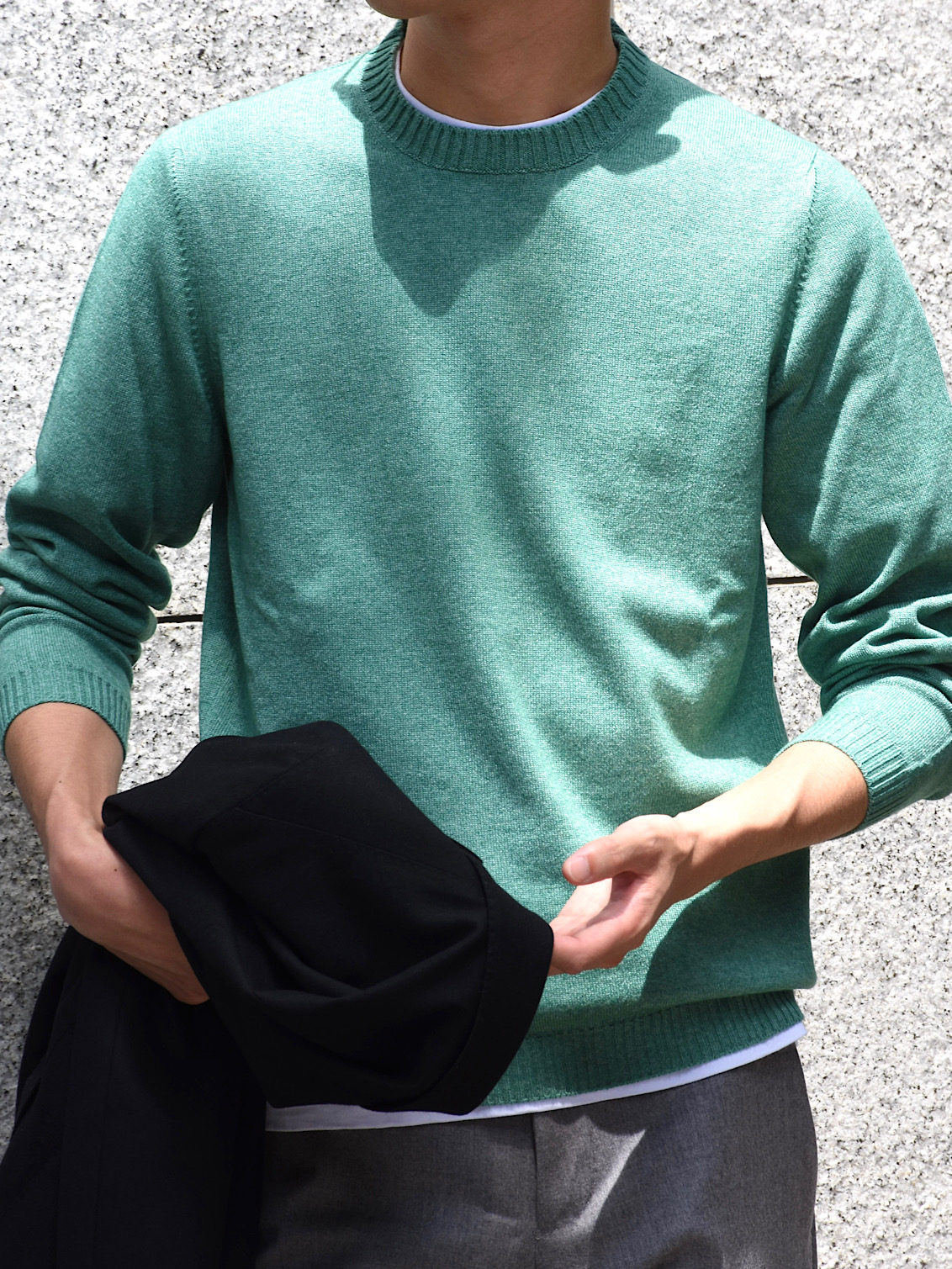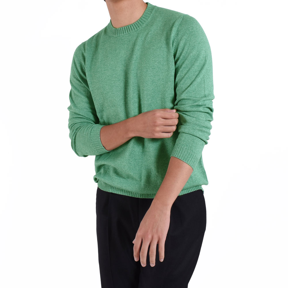 ・編み地はカシミア50%、シルク50%の通称"シルカシ"。毛羽立ちが抑えられたヌメり感あるタッチと適度なツヤ感が特徴です。