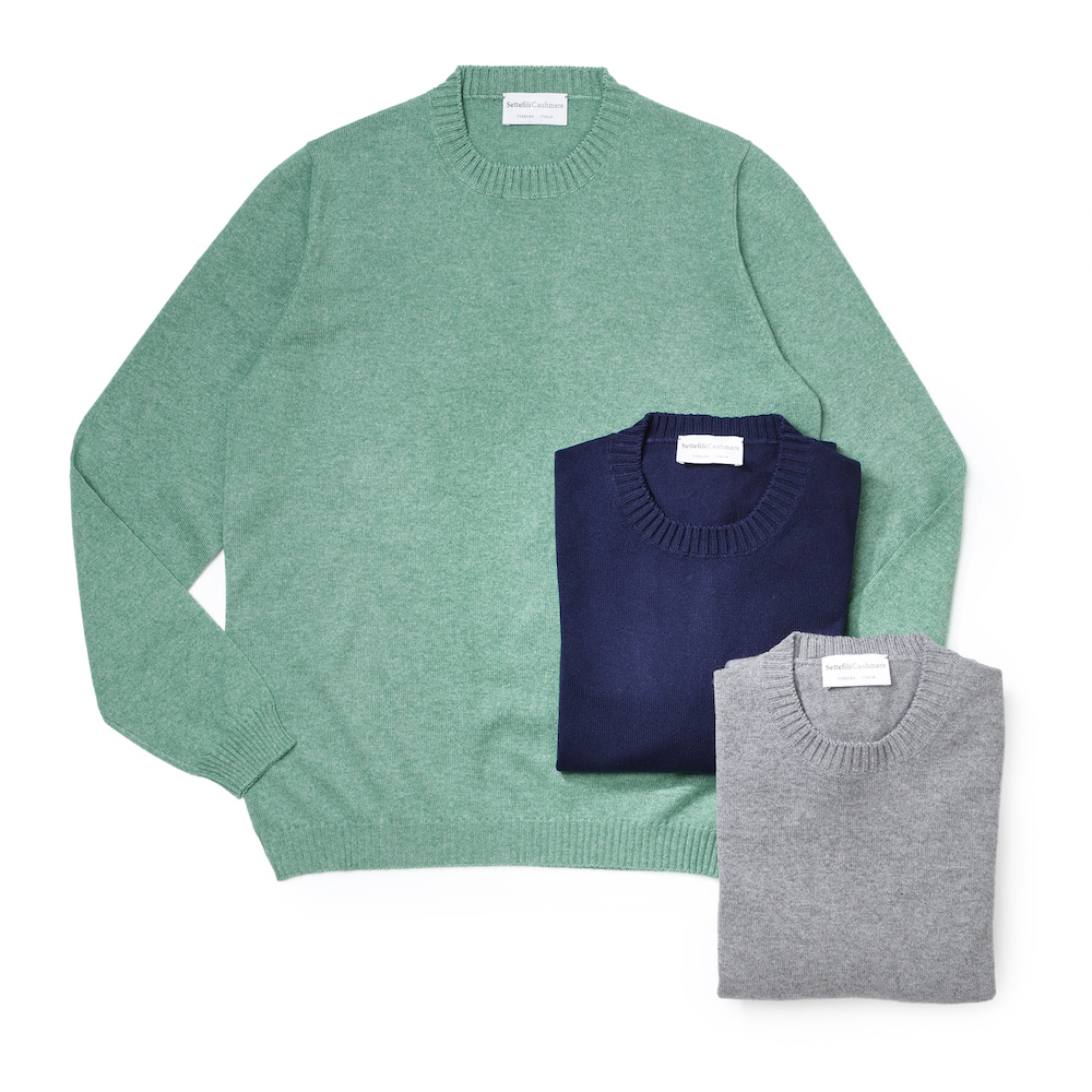 ・カシミアを代表とする素材の良質さ、日本人の体型に合うフィッティング、といった部分で、B.R.SHOPのラインナップから「Settefili Cashmere(セッテフィーリ カシミア)」は絶対に外せないブランドのひとつ。ベーシックで長く着られるデザインが多い同ブランドですが、BRが考えるスタンダード且つラグジュアリーなアイテムを今シーズンも別注にてご用意しました。こだわったポイントは2つあり、リブ幅とボディバランスです。