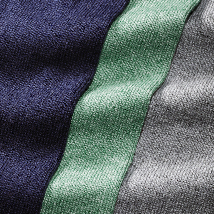 ・こちらの"シルカシ"は9月から3月くらいまでおよそ半年着られる編み地。上質感あるベーシックカラーと美しい挿し色まで全9色と豊富なバリエーションをラインナップしました。同じ編み地でVネックとタートルも今後ご紹介いたします。