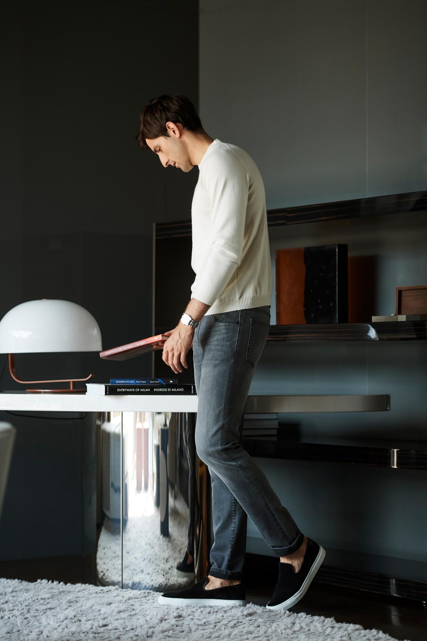 ・元々は幅広だった袖と裾のリブを細めにリクエスト。これによってクラシック感が薄まり、カットソーのような軽い雰囲気を実現