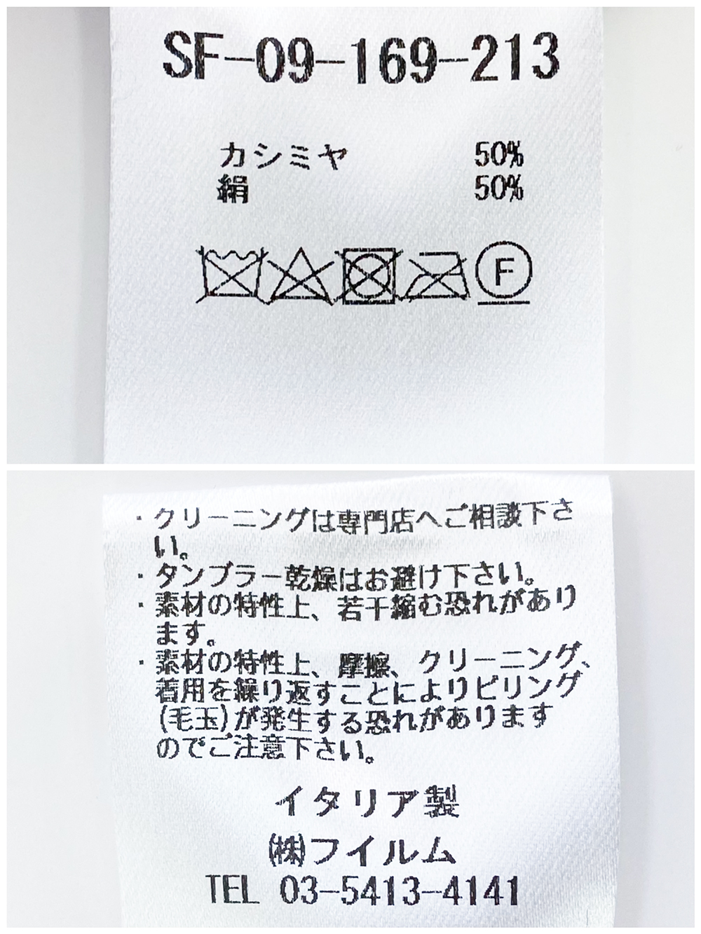 ・編み地はカシミア50%、シルク50%の通称"シルカシ"。毛羽立ちが抑えられたヌメり感あるタッチと適度なツヤ感が特徴です。