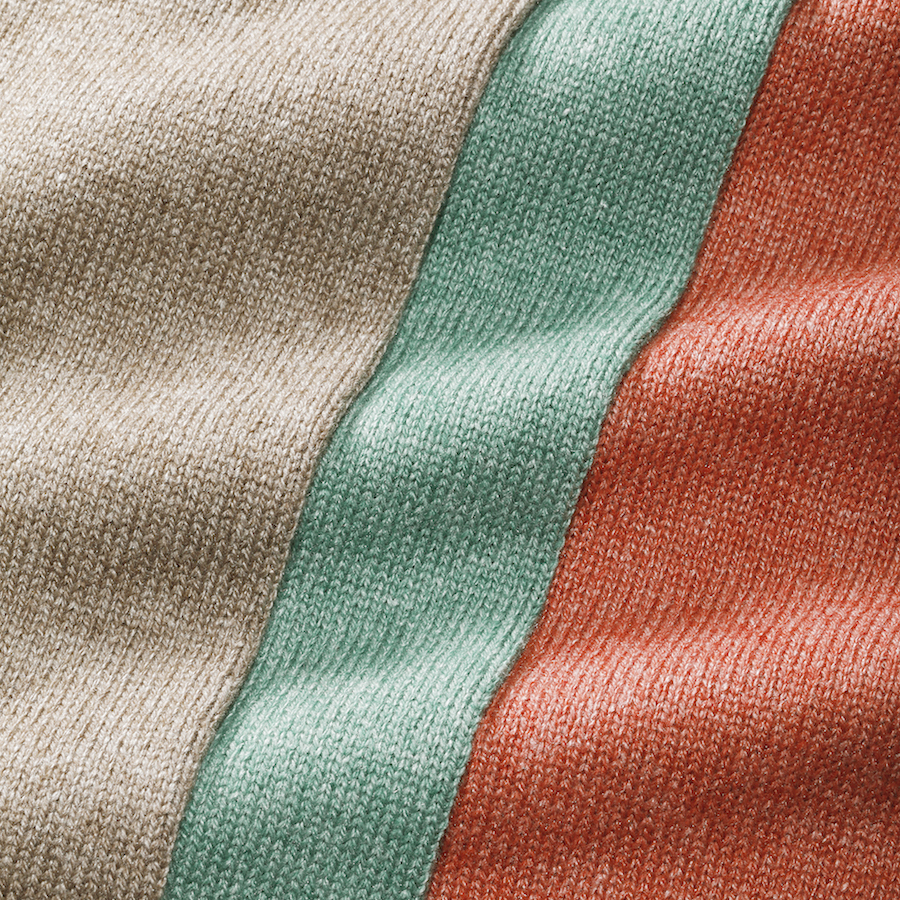 ・編み地はカシミア50%、シルク50%の通称"シルカシ"。毛羽立ちが抑えられたヌメり感あるタッチと適度なツヤ感が特徴です。