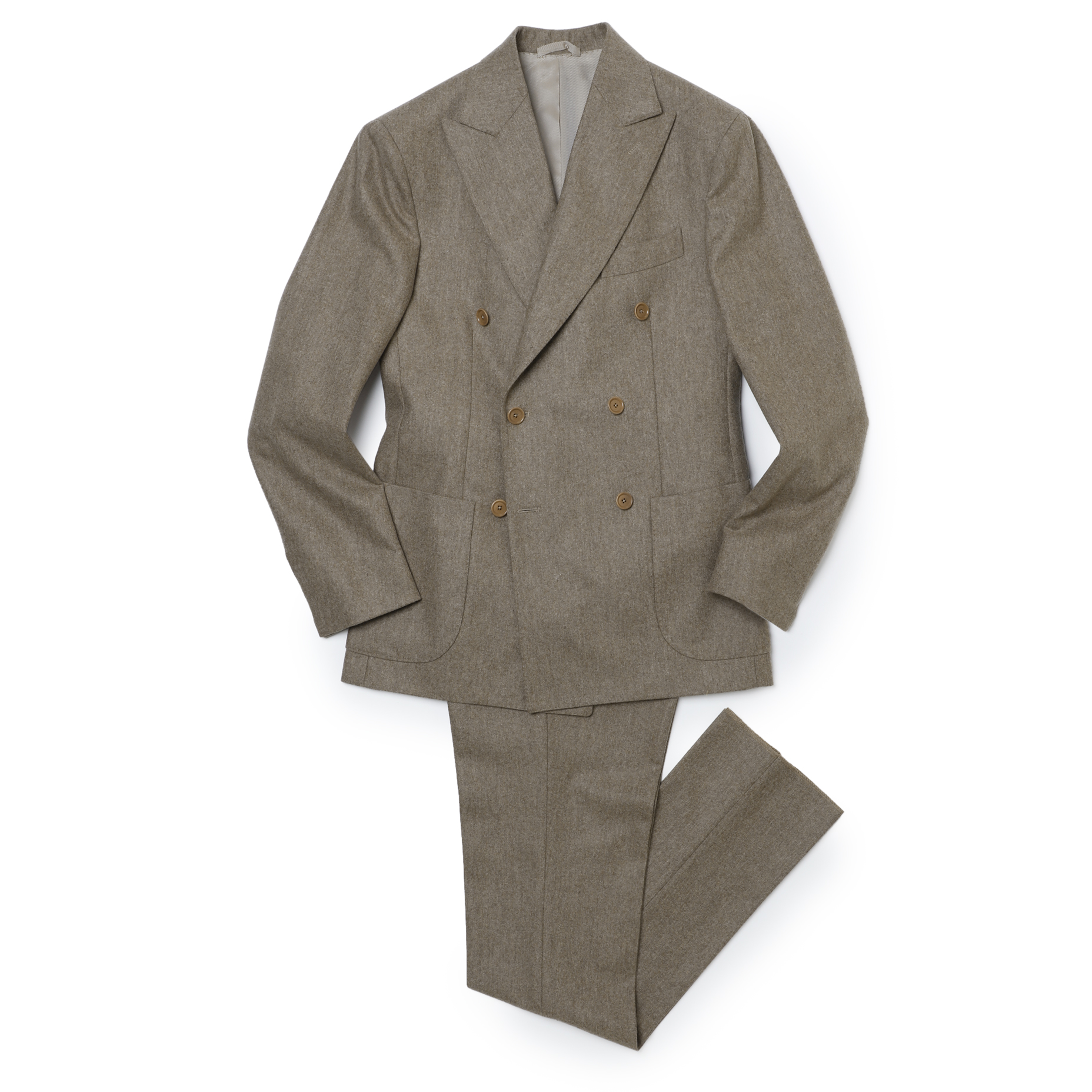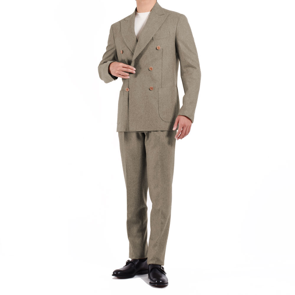 ・BRが得意とする品のあるベージュフランネルのスーツをダブルブレステッドでご用意しました!元来はスポーティな生地であるフランネルが、ベージュという色合いと優雅さのあるダブルになることで一気にラグジュアリー領域へ突入する一着です。