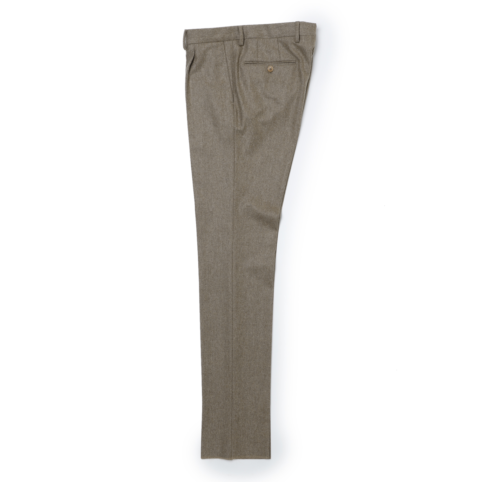 ・目付けは340グラムと重すぎず、フランネル特有の重厚感は色合いと相まって感じさせません。トーンオントーンで纏められたボタンやライニングも上品さを醸します。