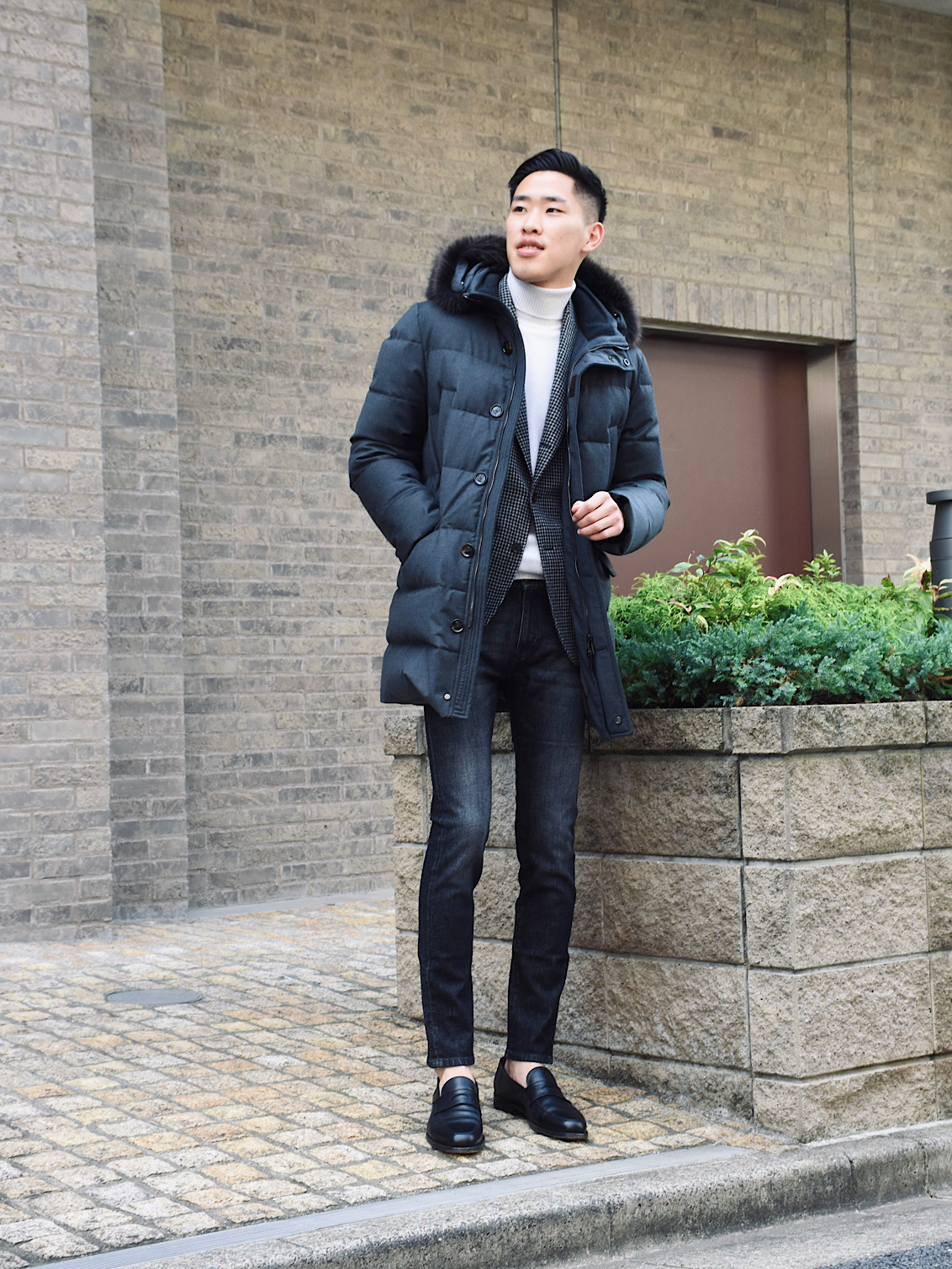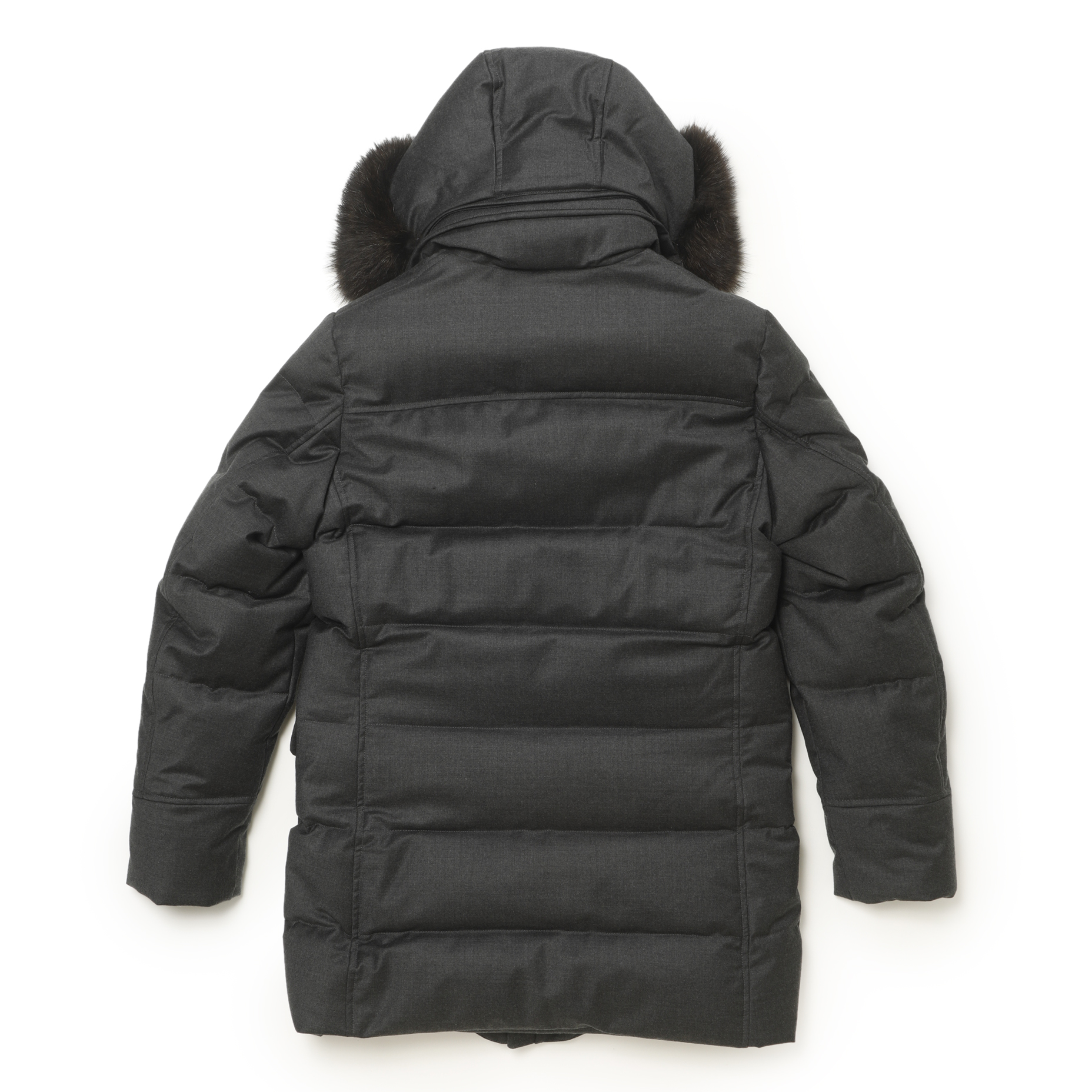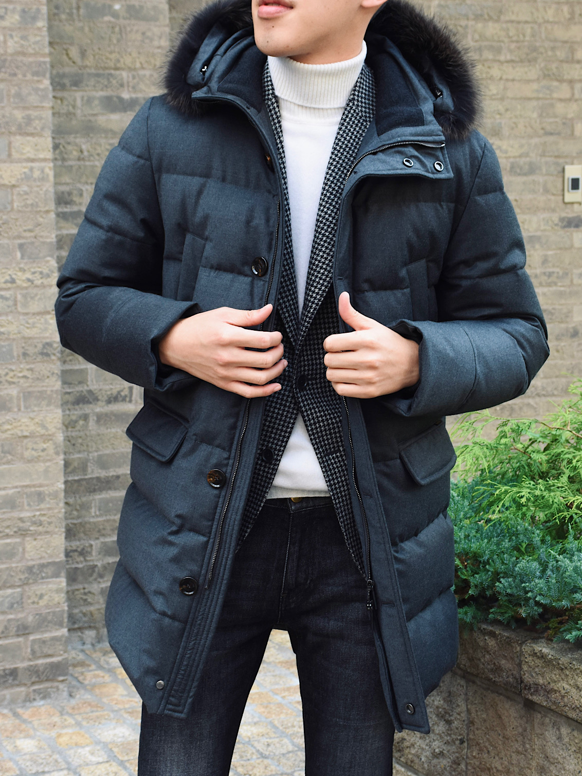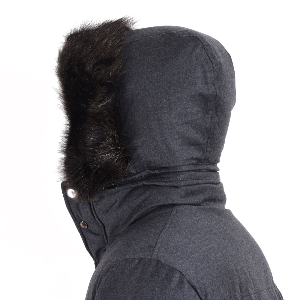 ・フード部分には天然ファーをあしらい、スナップボタン・ファスナー・ホーン釦といったパーツは特注のオリジナル品を使用。ディテールにも一切の妥協はありません。まさに細部に渡りクオリティーの高さを追求しています。