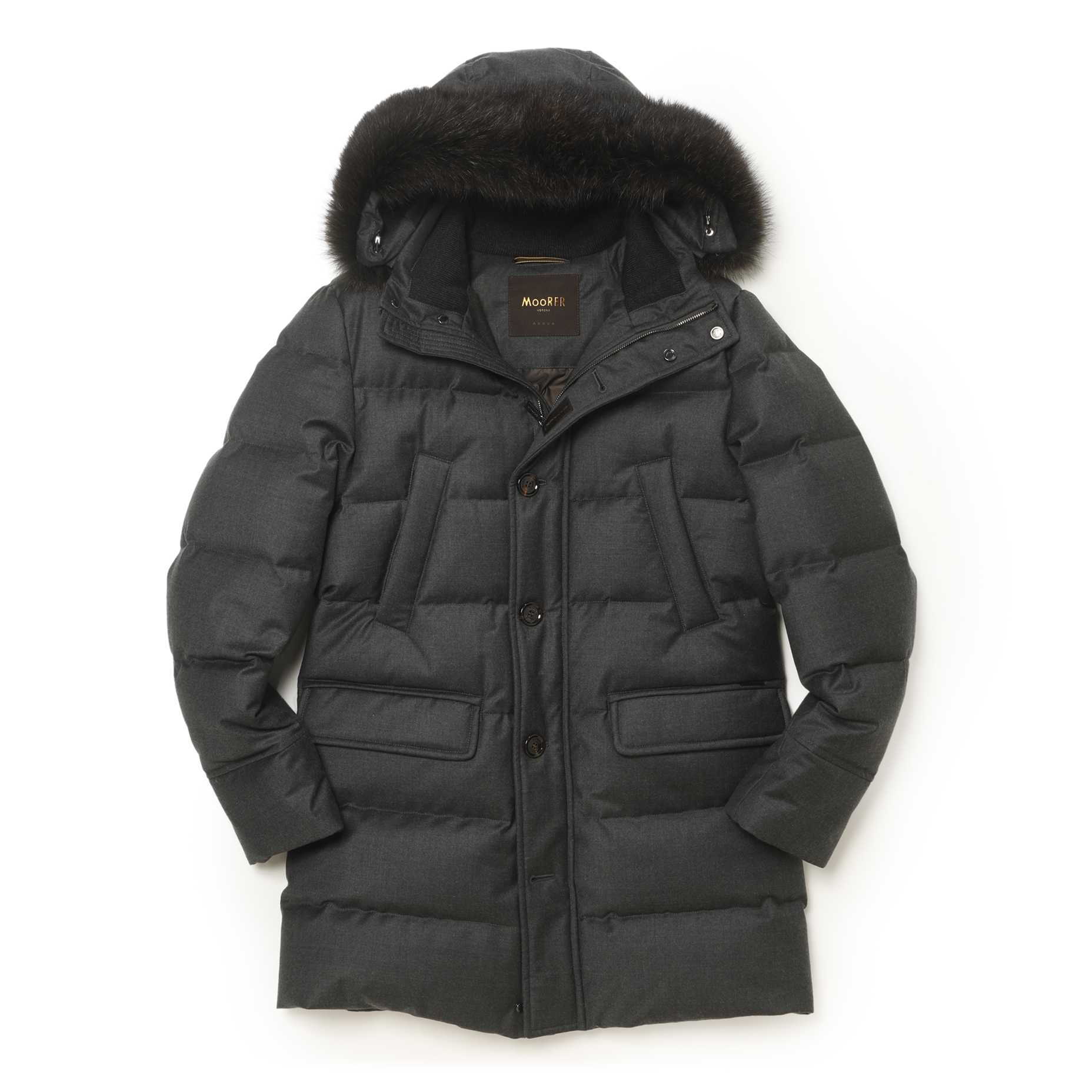 ・「MooRER(ムーレー)」には定番モデルが存在しており、こちらでご紹介する"BARBIERI"もそのひとつ。襟裏と袖口にはウールのリブが付属することで肌触りが良く、冷気を遮断。それに加え、ハンドウォーマーポケットとウエストドローコードも付属し保温性の高さは言わずもがな、です。それでいてボリューミーに見え過ぎないシルエットが秀逸。肩や胸廻りに適度なフィット感を得られ、シャープなスリーブラインが美しい一着です。